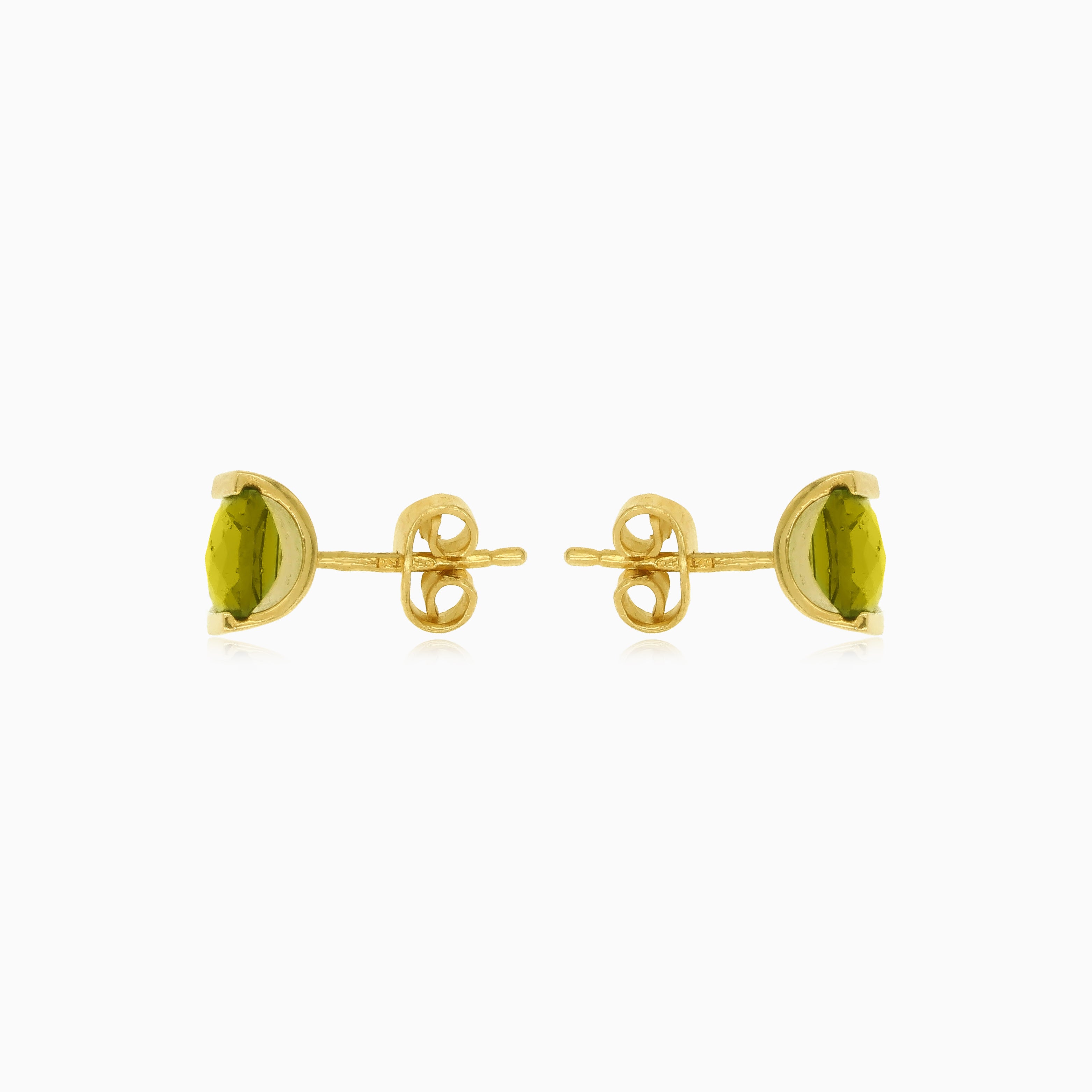 Eleva tu estilo con estos pendientes de botón de oro amarillo de 14 quilates que presentan una moldavita de corte princesa cuadrado en engaste de barra. Los pendientes cuentan con un cierre de pousette seguro, ofreciendo una combinación perfecta de sofisticación y sencillez para una elegancia diaria.
