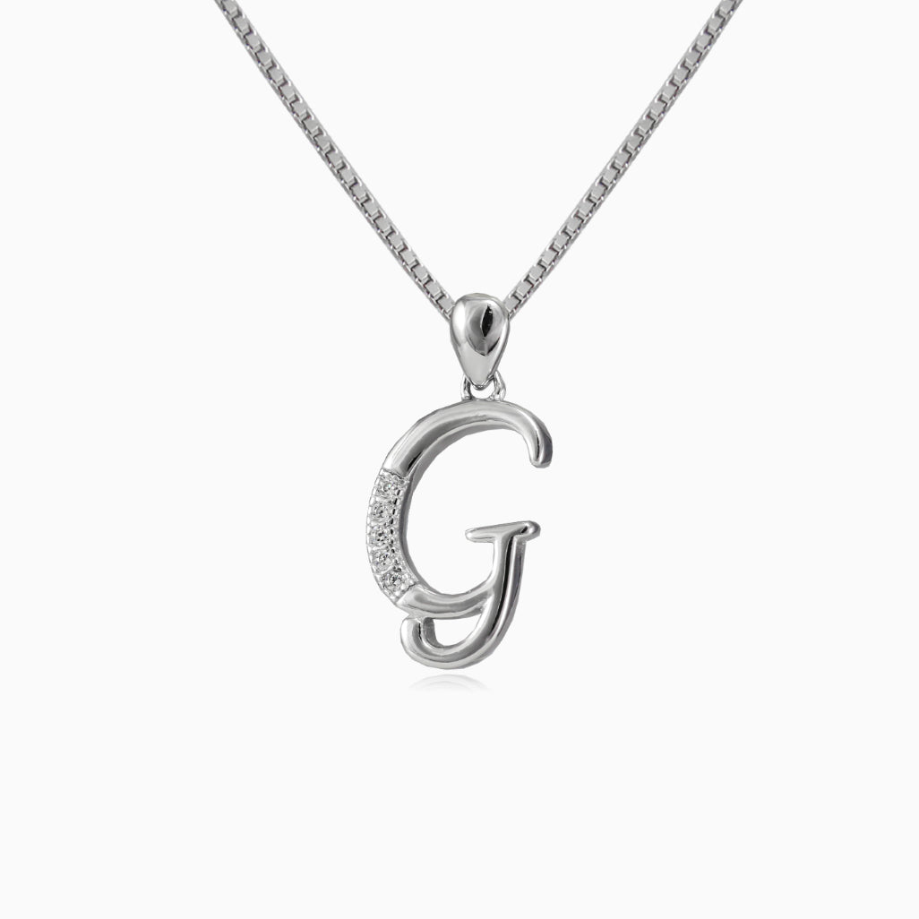 Merveilleux pendentif lettre G en argent sterling, orné de zircone cubique.
