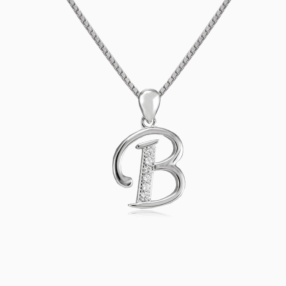 Magnifique pendentif lettre B en argent sterling, orné de zirconiums cubiques.