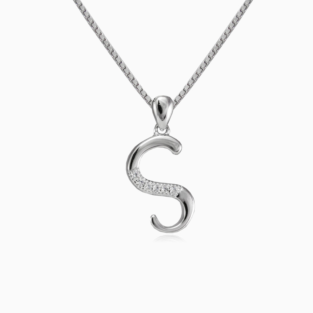 Superbe pendentif lettre S en argent sterling, orné de zircon cubique.