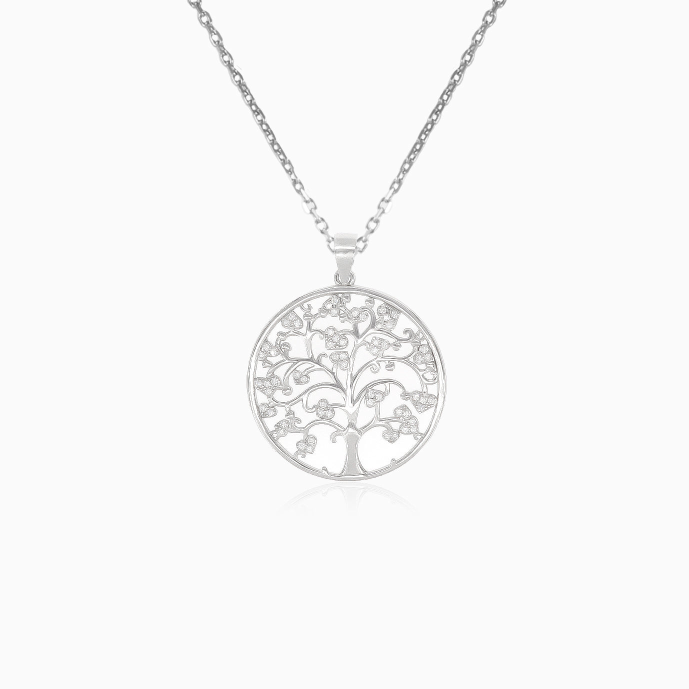 Grand pendentif arbre de vie en argent avec zircon cubique