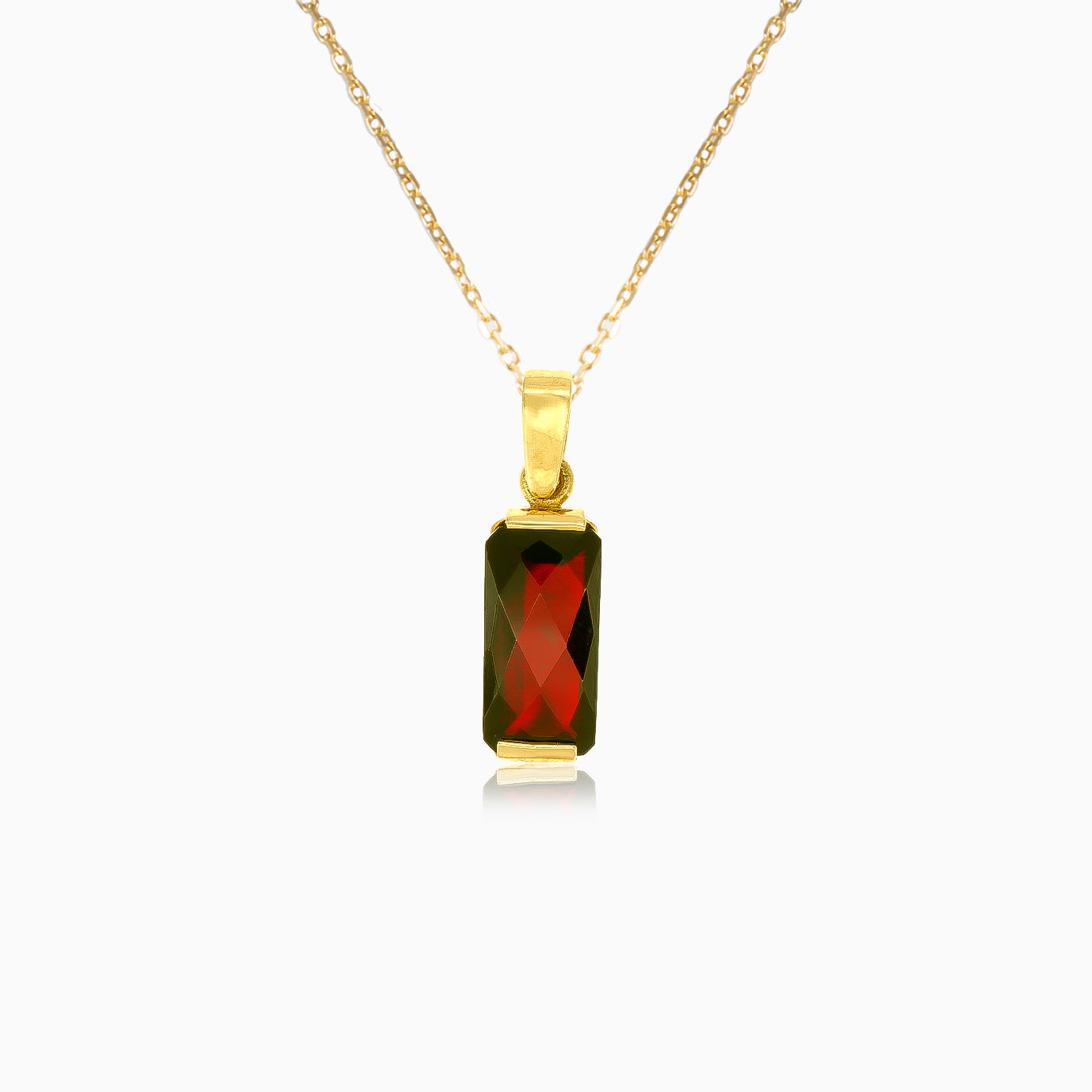 Illuminez votre look avec notre élégance éclatante – pendentif grappe en or jaune 14 carats, orné de grenat taille radiant rectangulaire. Le sertissage barre ajoute une touche de sophistication, faisant de ce pendentif un parfait mélange de charme intemporel et de style contemporain.