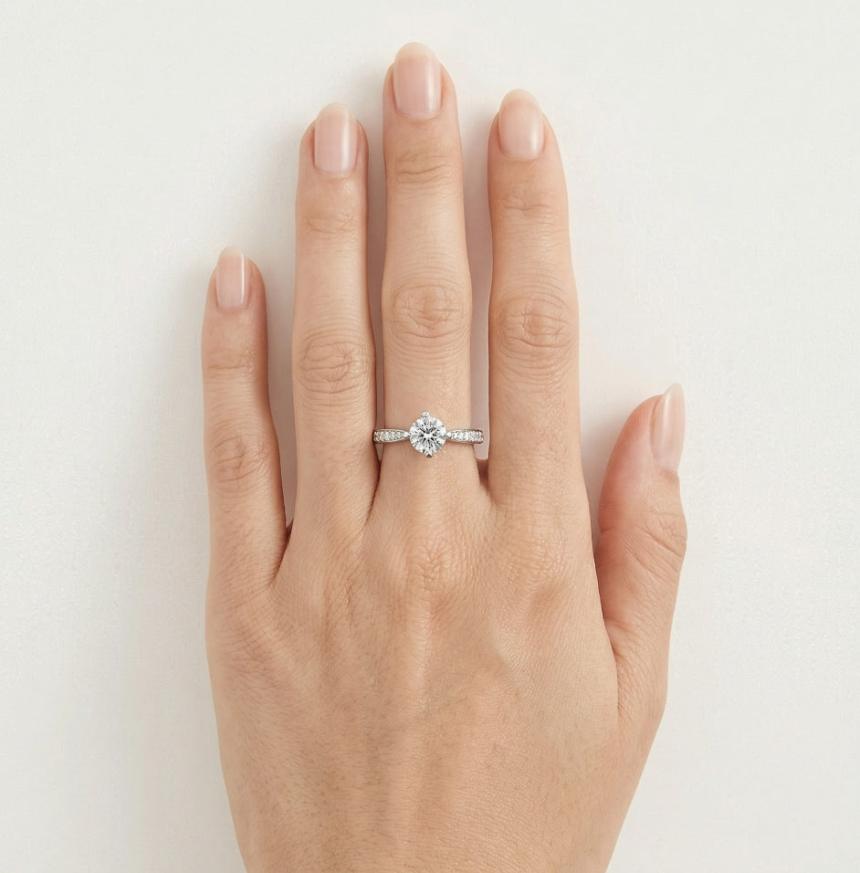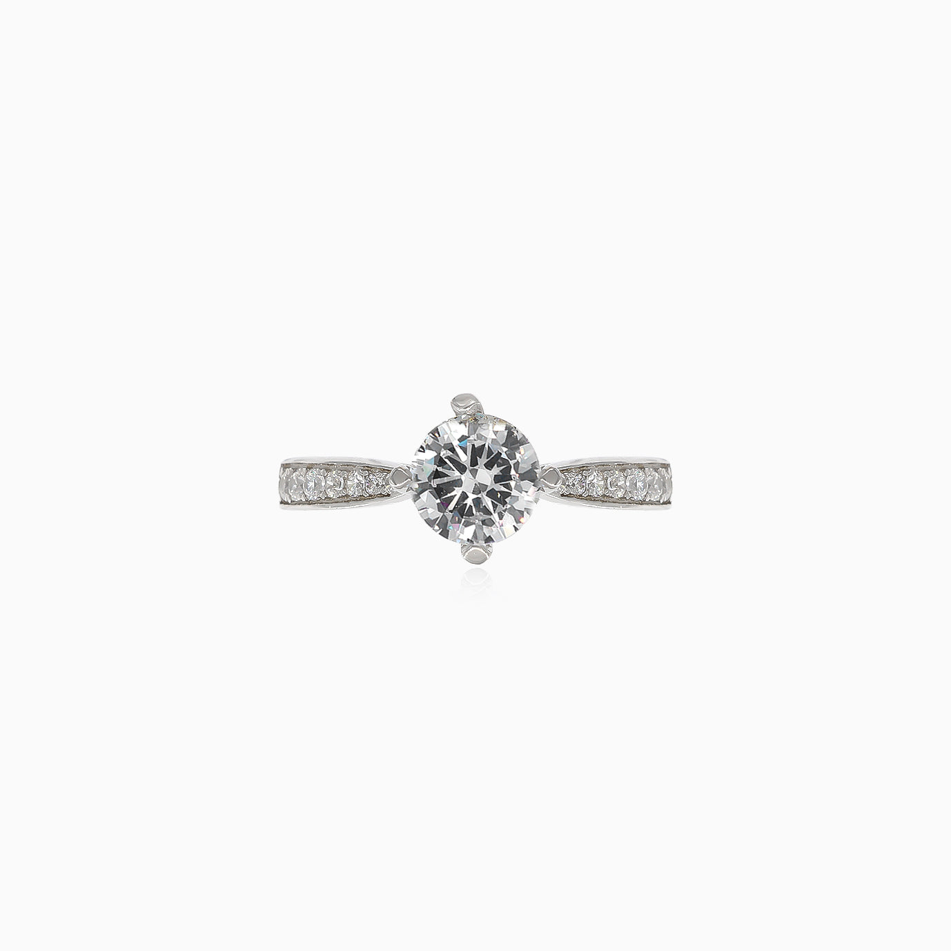 Sublimez votre style avec notre bague en argent pour femme ornée de zircons cubiques taillés en rond à degrés fins, délicatement sertis griffes. Cette bague exquise apporte une touche de sophistication à toute tenue.