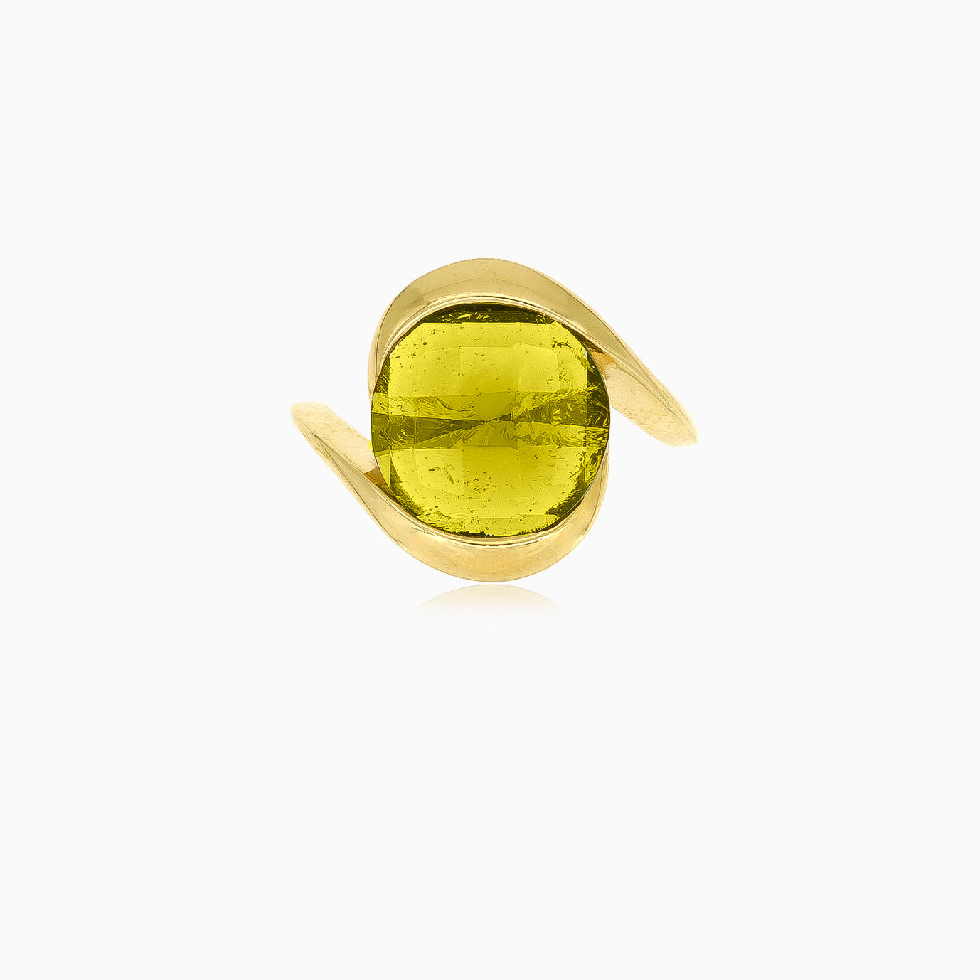 Adoptez un style inégalé avec cette bague pour femme en or jaune 14 carats, ornée d'une envoûtante moldavite ronde à taille escalier fine. Le serti clos ajoute une touche moderne, créant une pièce distinctive qui allie sophistication et design contemporain.