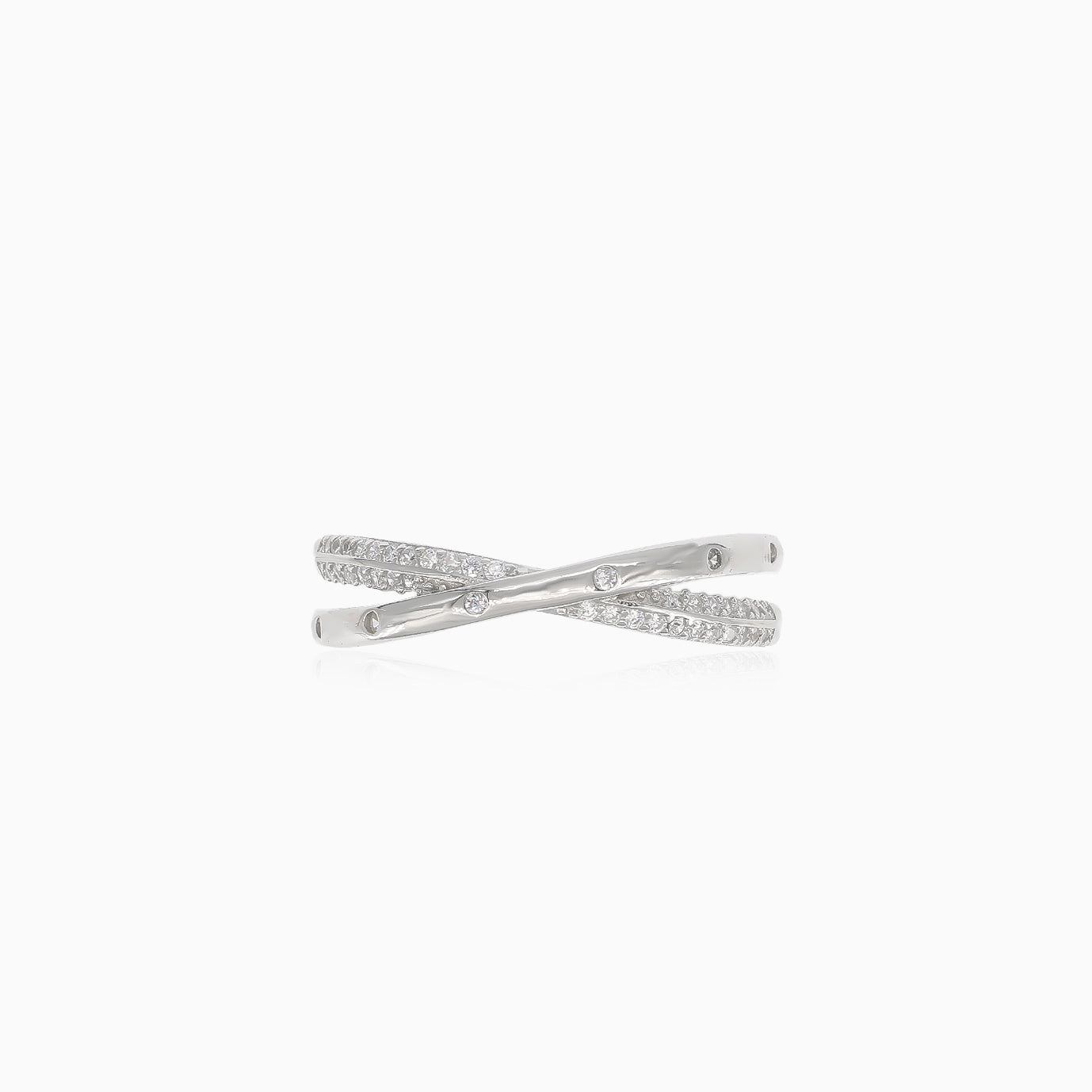 Bague en argent design X avec zirconium cubique.