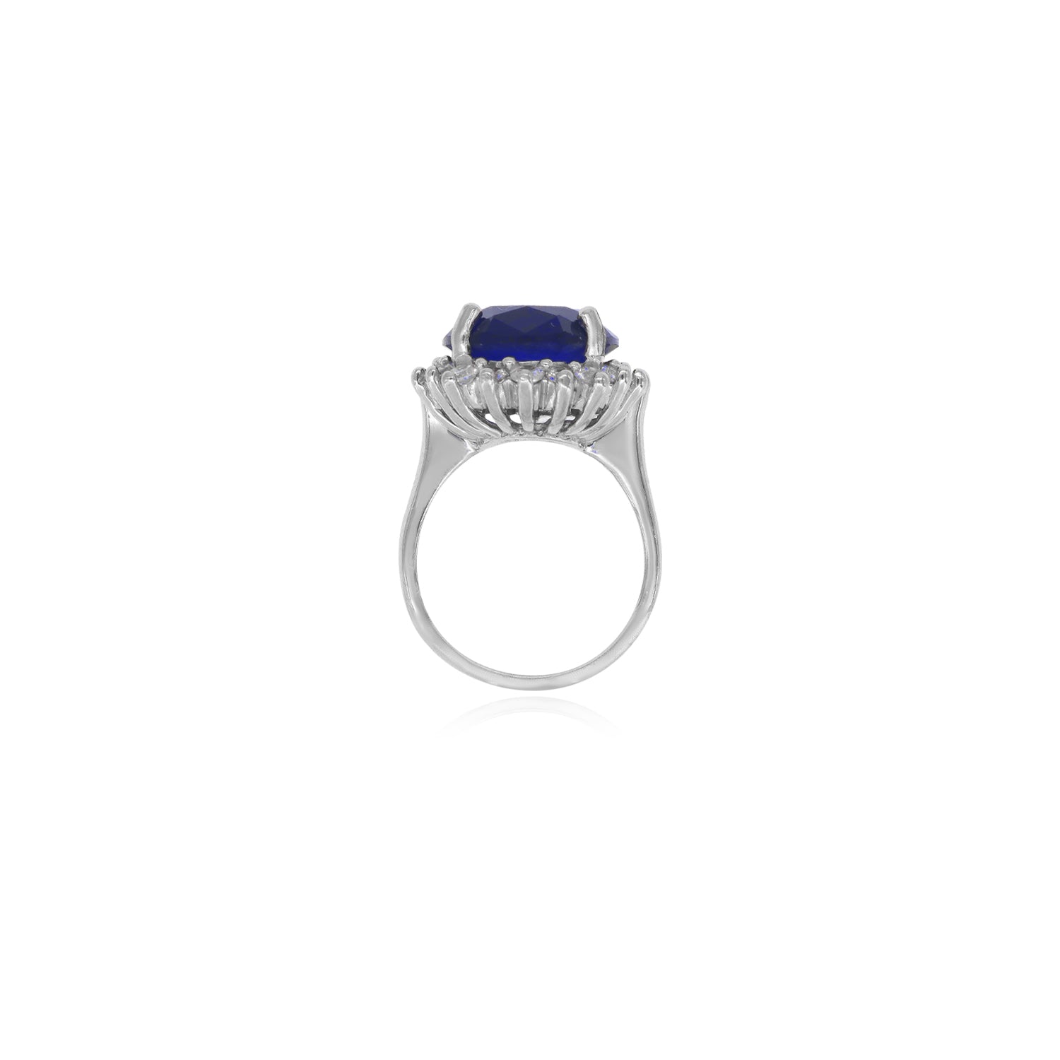 Cette magnifique bague halo en argent sterling présente un saphir synthétique au centre, taillé en fine taille ovale. Autour du saphir vibrant se trouvent des pierres en zircon cubique taillées en rond et en étapes fines, ajoutant une brillance supplémentaire. Le sertissage griffes maintient chaque pierre avec élégance, créant un design intemporel et raffiné, parfait pour les occasions spéciales.