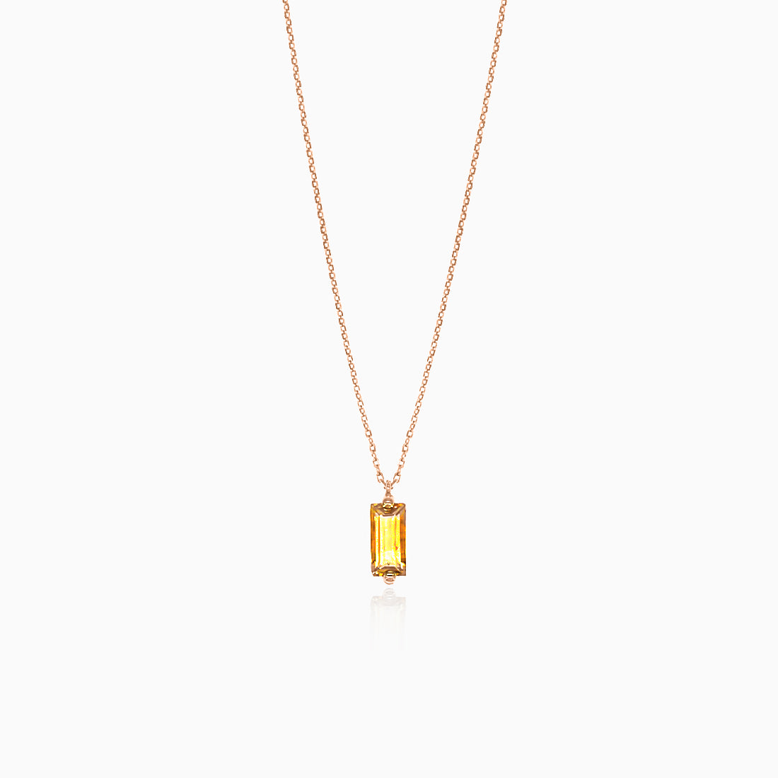 Découvrez l’élégance de notre collier en or rose 14 carats, mettant en avant une citrine rectangulaire de 0,30 ct. Ce collier est équipé d’un fermoir mousqueton sécurisé.