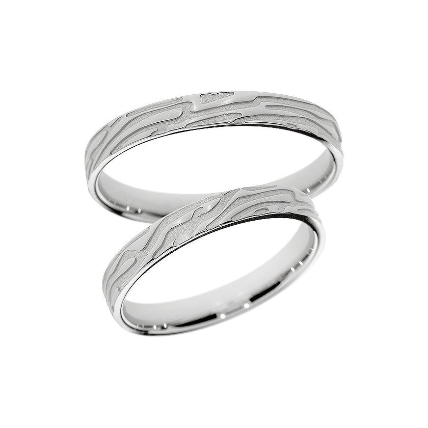 Cette alliance design en or blanc 14 carats est parfaite pour femmes et hommes, avec une bande de 3 mm sans pierres. Le design, à la fois détaillé et simple, combine finition brillante et mate pour un look sophistiqué. Idéale pour ceux qui apprécient l’élégance discrète de leur alliance.