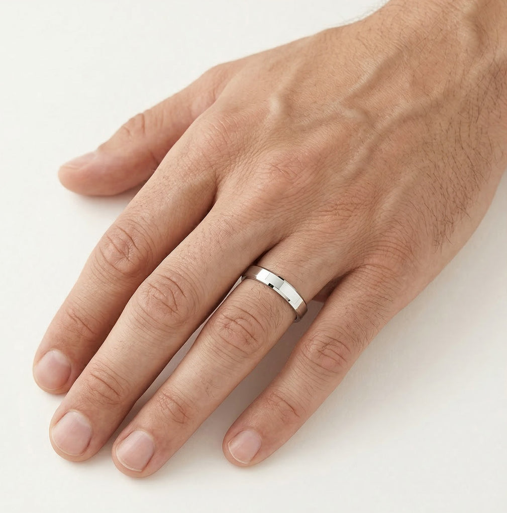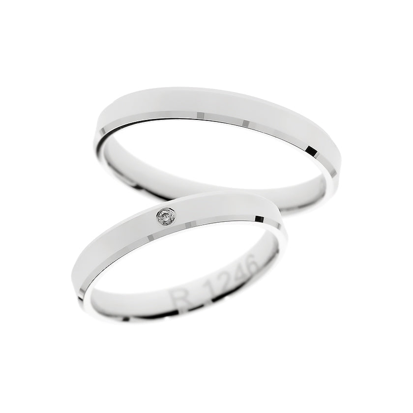 Cette élégante alliance en or blanc 14 carats présente une bande de 3 mm avec une finition polie brillante et des bords tombants uniques. Disponible en design simple ou avec un zircon cubique ou diamant de 0,015 ct en taille ronde à facettes fines, serti clos, cette bague offre un look intemporel et raffiné pour femmes et hommes.