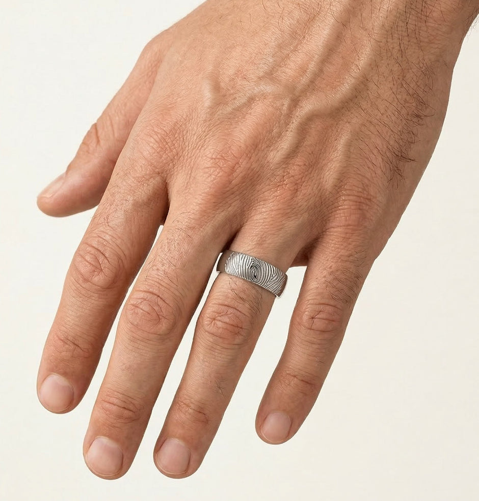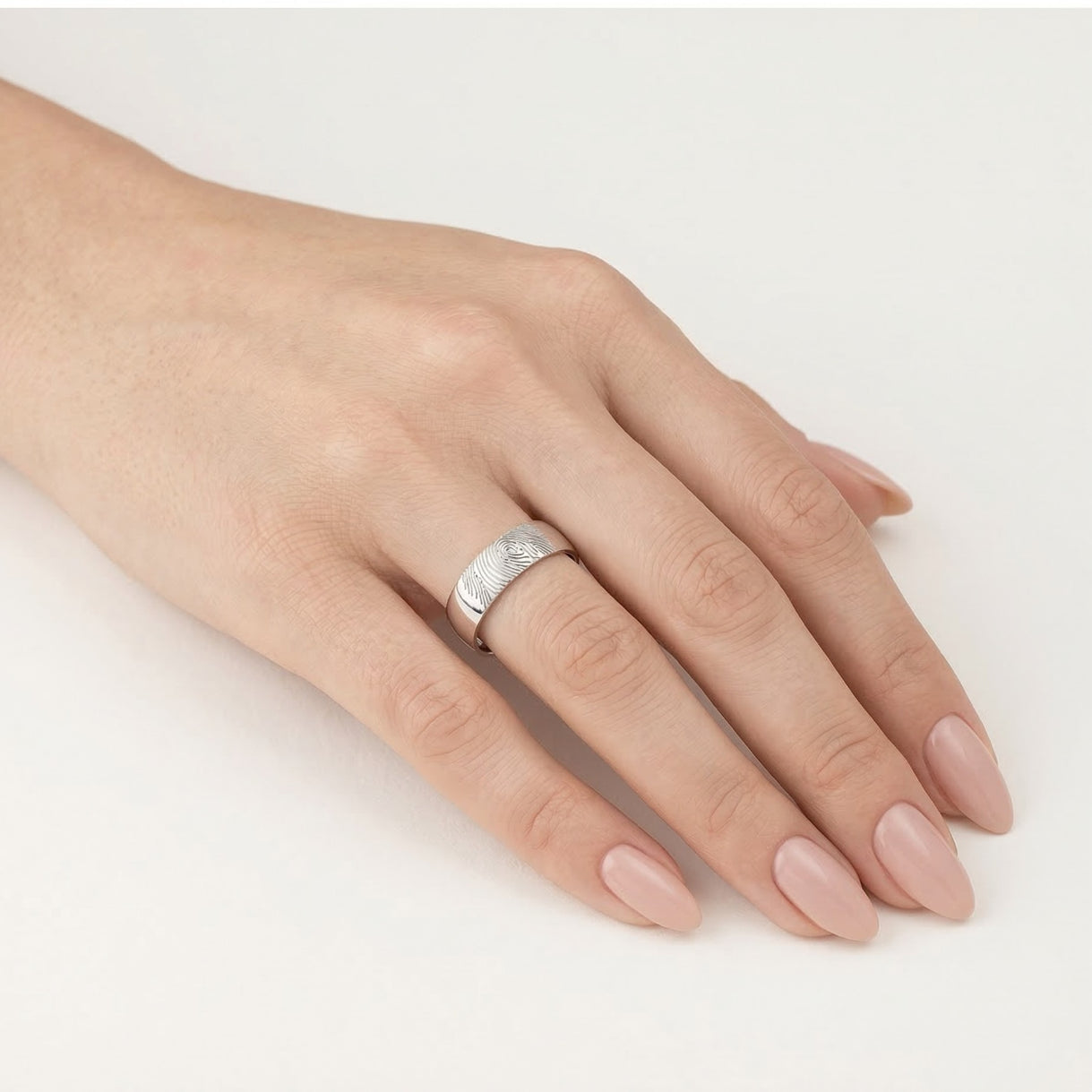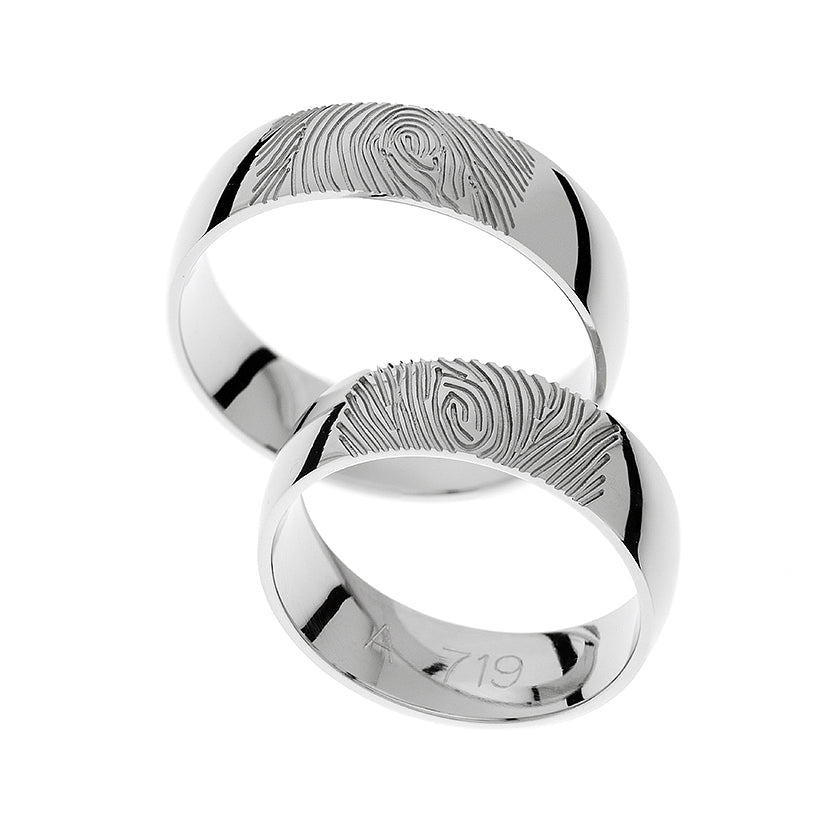 Alliance en or blanc avec gravure d’empreinte digitale