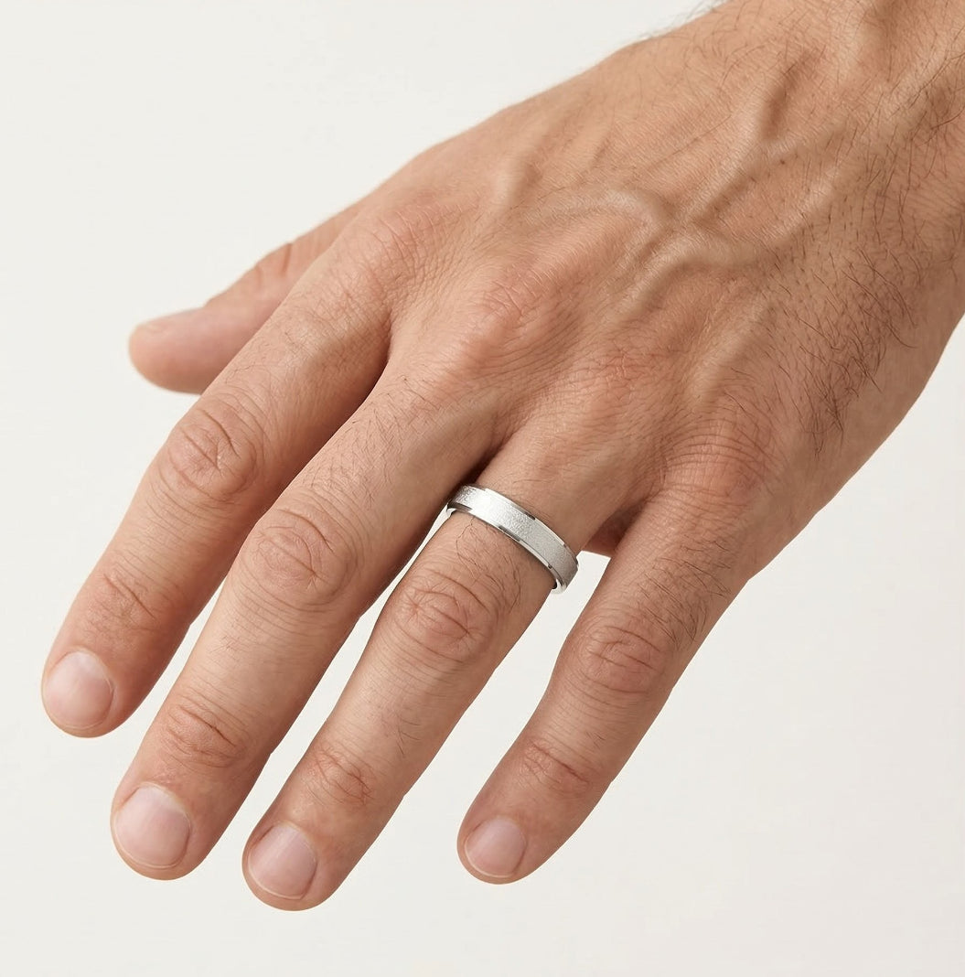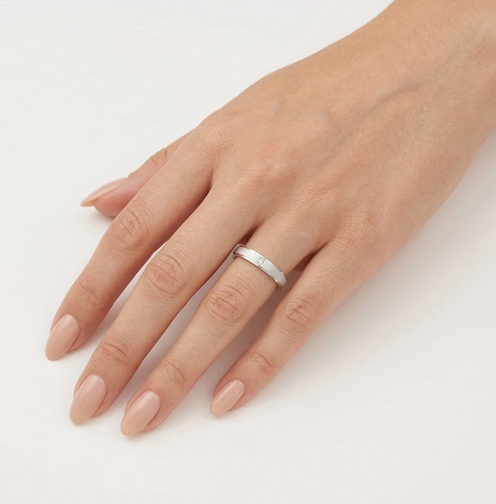 Bague de mariage en or blanc avec finition mate.