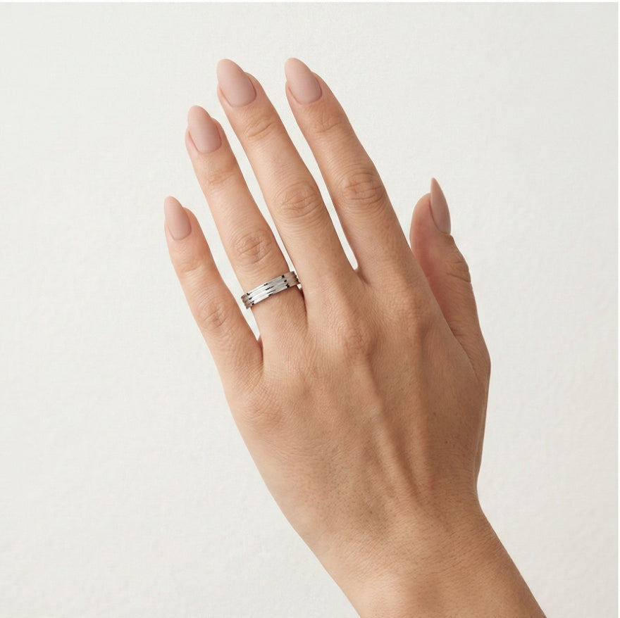 Bague de mariage en or blanc avec finition mate, brillante et polie.
