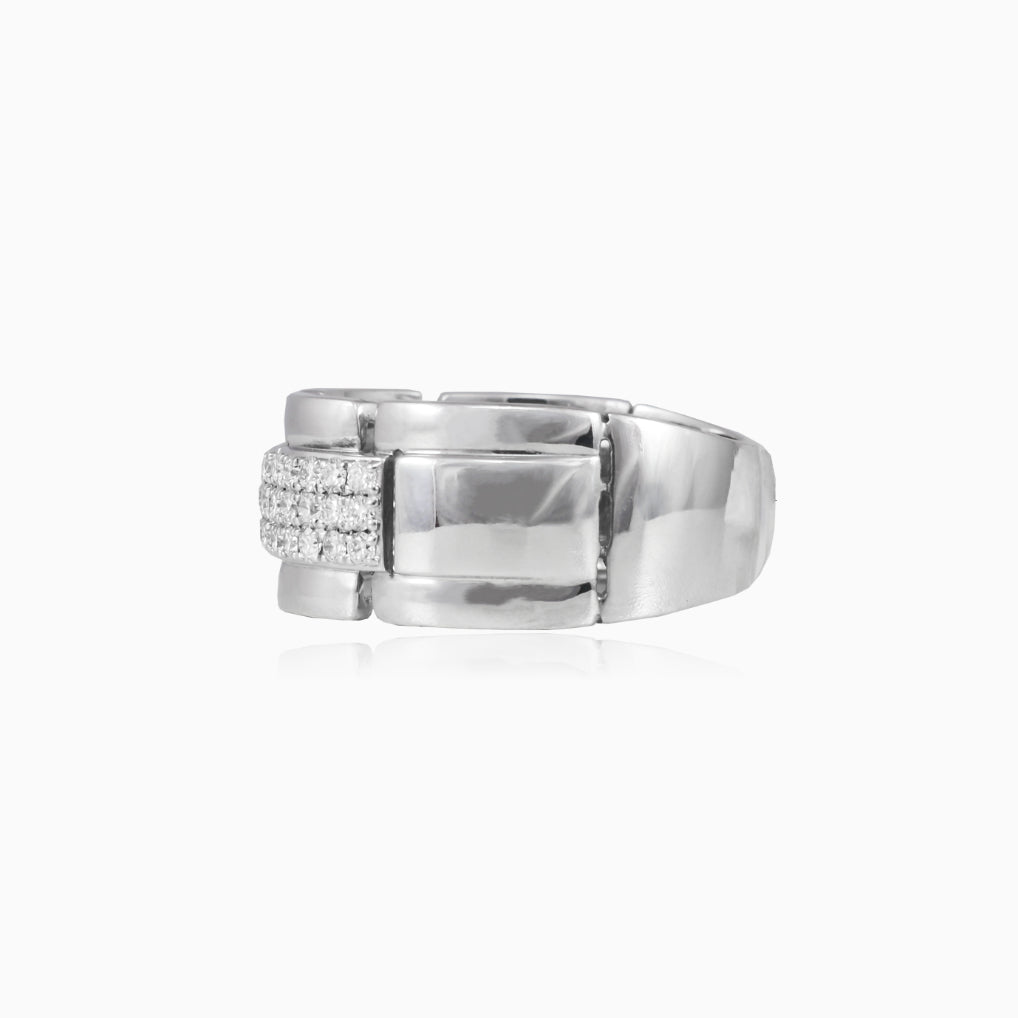 Bague homme en or blanc avec diamant en maillons