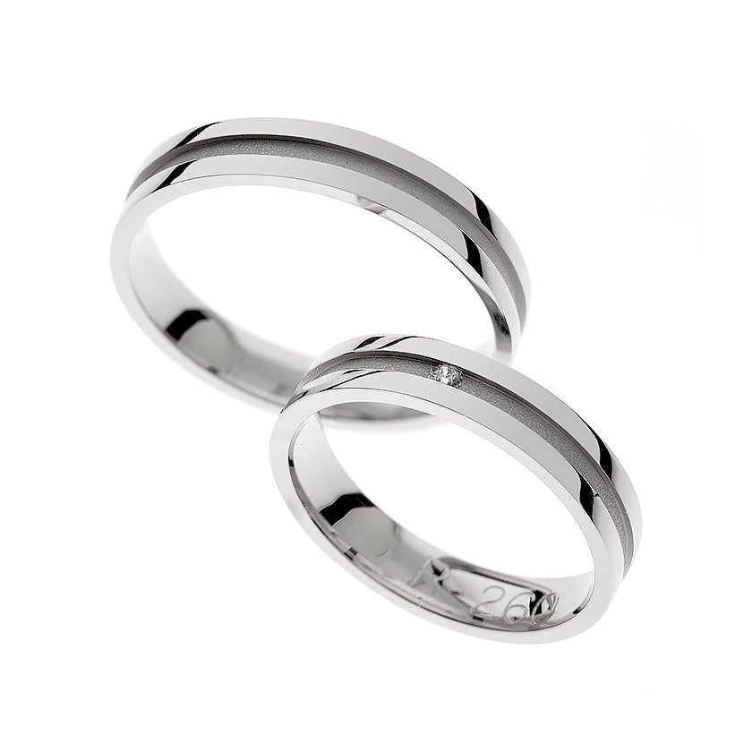 Bagues de mariage en or blanc avec ligne gravée