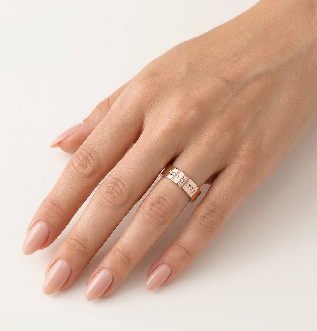 Bague de mariage élégante en or rose avec pierresBague de mariage élégante en or rose avec pierres