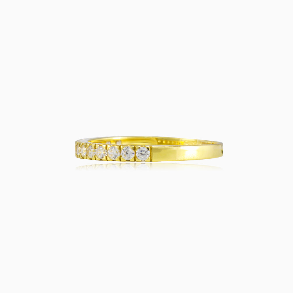 Bague intemporelle en or jaune 14K décorée de zircon cubiques sertis en "queue de poisson".