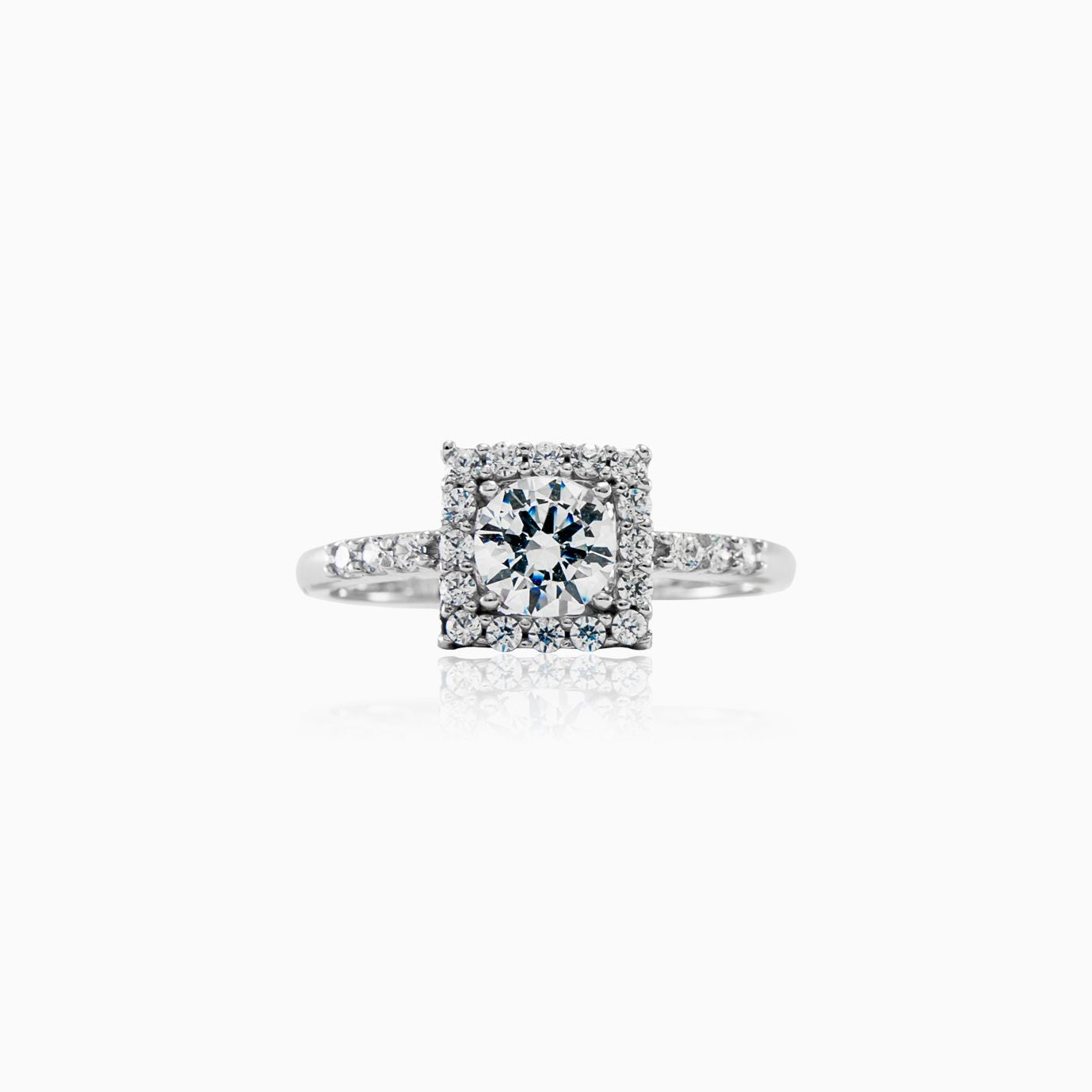 Magnifique et impressionnante bague de fiançailles en or blanc 14K avec zirconia cubique. Design moderne et contemporain.