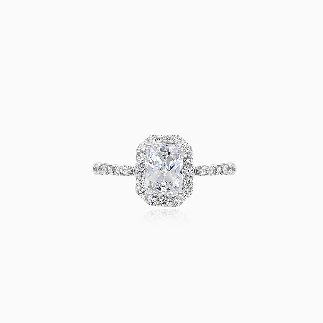Bague en or blanc avec zirconium cubique taillé émeraude Bague en or blanc avec zirconium cubique taillé émeraude