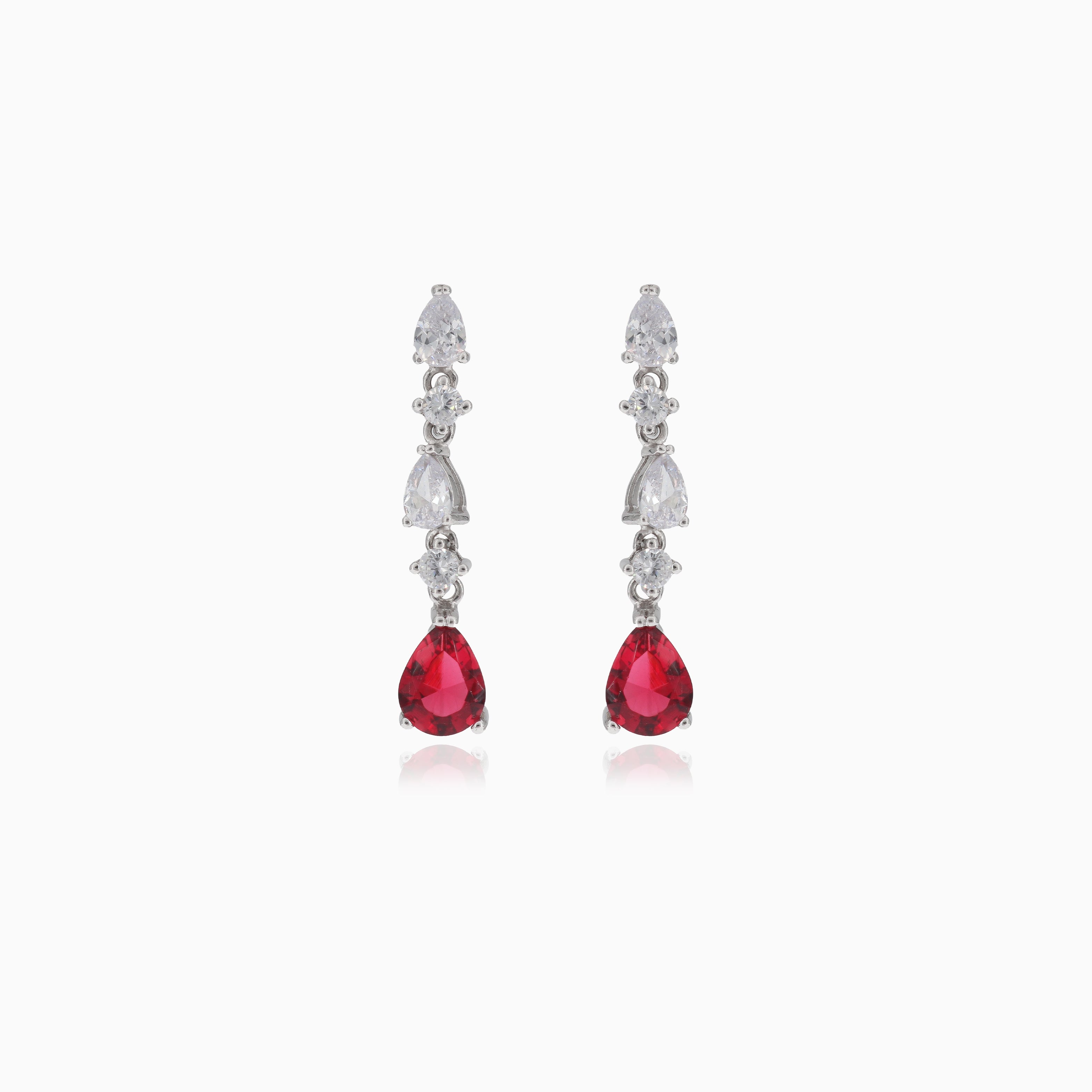 Boucles d'oreilles en argent avec rubis synthétique et accents en zircon cubique