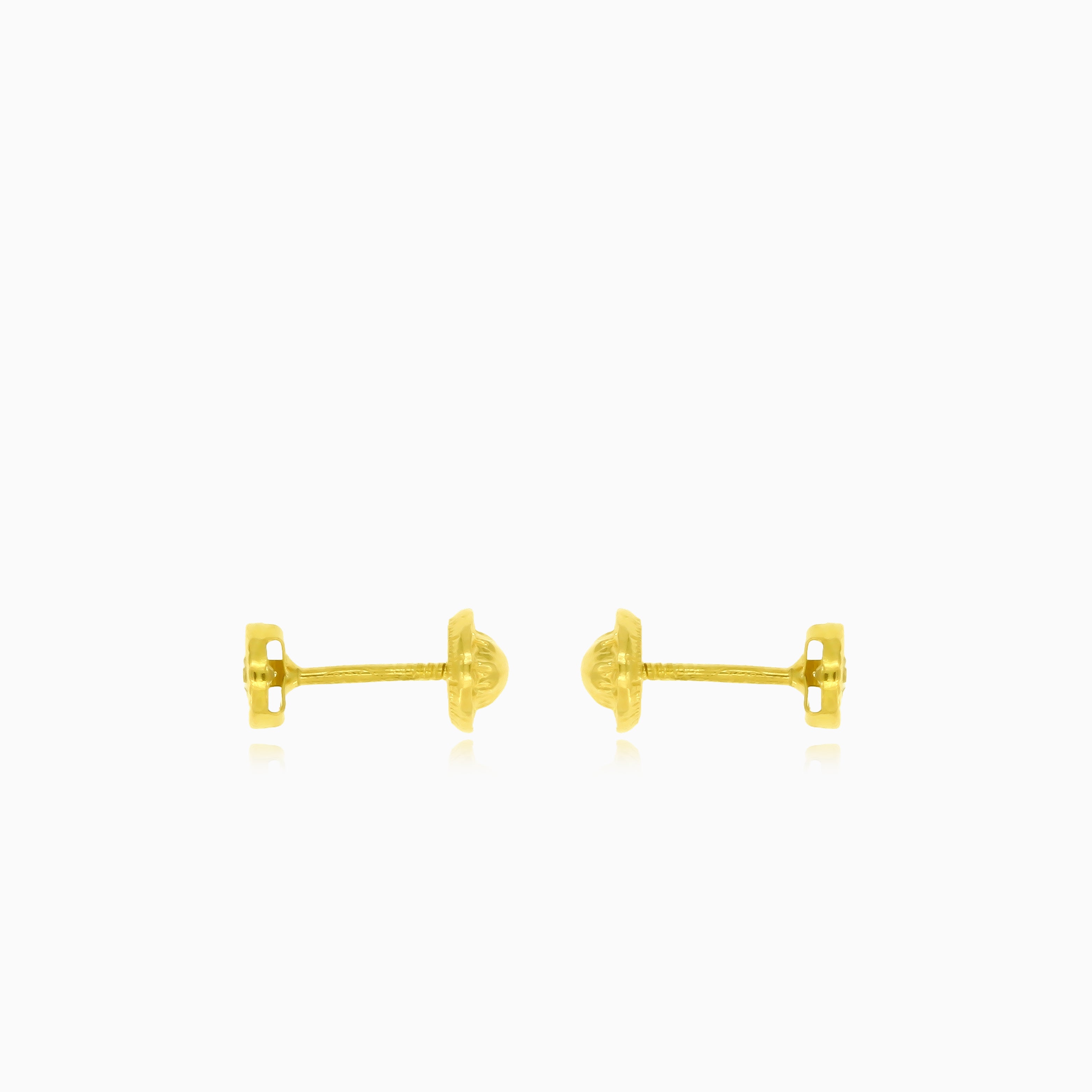 Boucles d’oreilles femme en or jaune 18 carats avec fermoir vissé, ornées de zirconias ronds taille escalier fine, élégamment sertis en clos pour une touche éclatante.