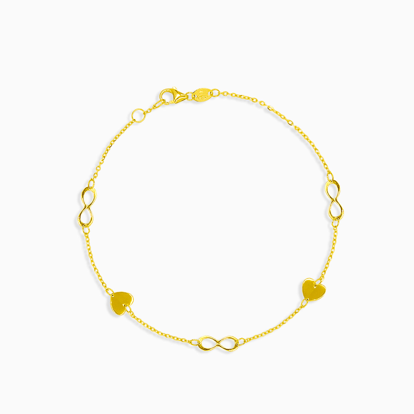 Bracelet en or avec cœurs et symboles de l'infini