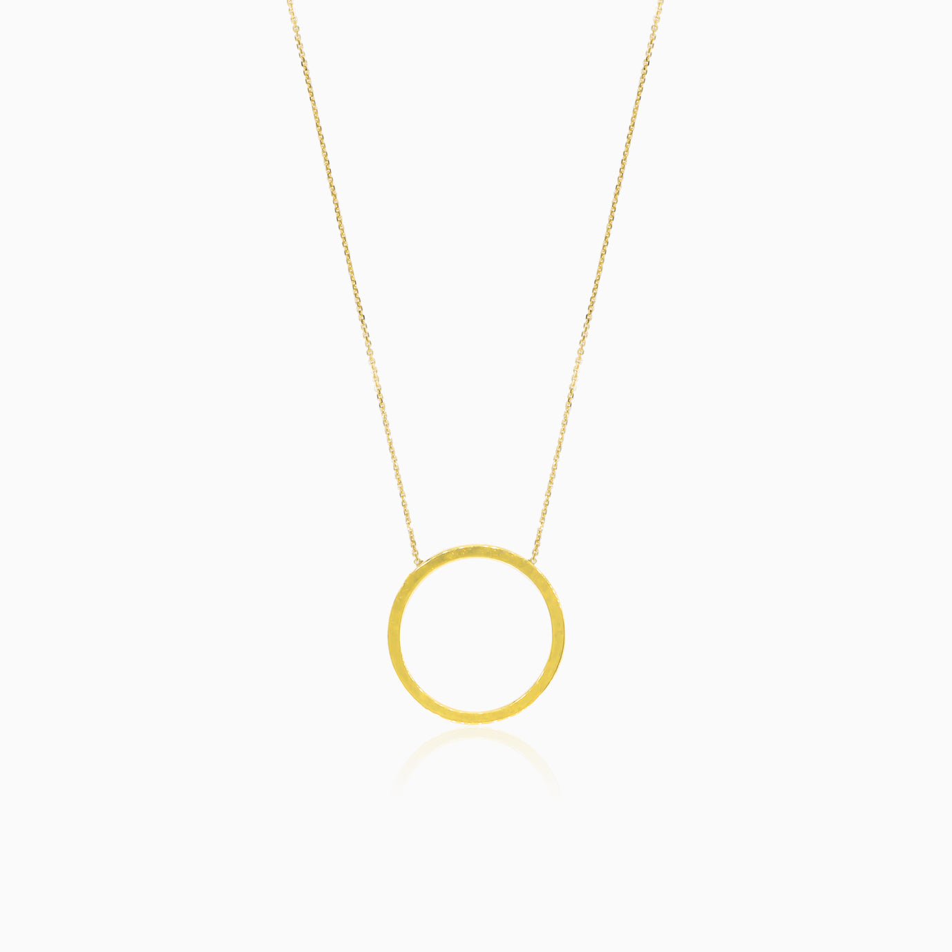 Ce collier moderne et élégant en or jaune 14 carats présente un pendentif cercle simple et une chaîne câble délicate. Le collier est réglable pour un ajustement confortable.