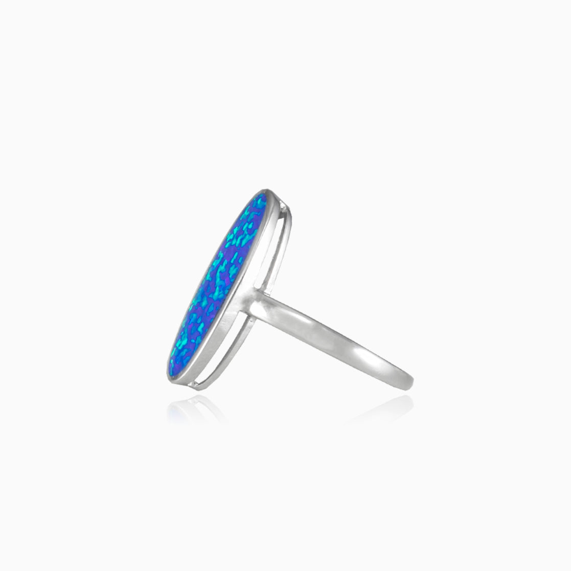 Bague audacieuse pour femmes en argent sterling, ornée d’une pâte d’émail opale bleue sur le dessus.