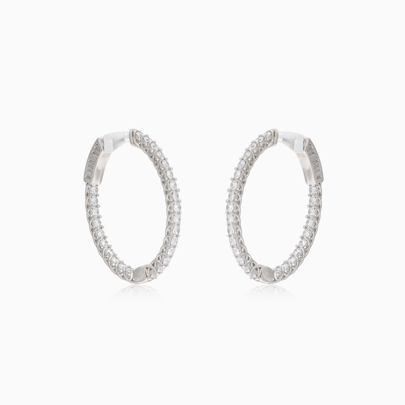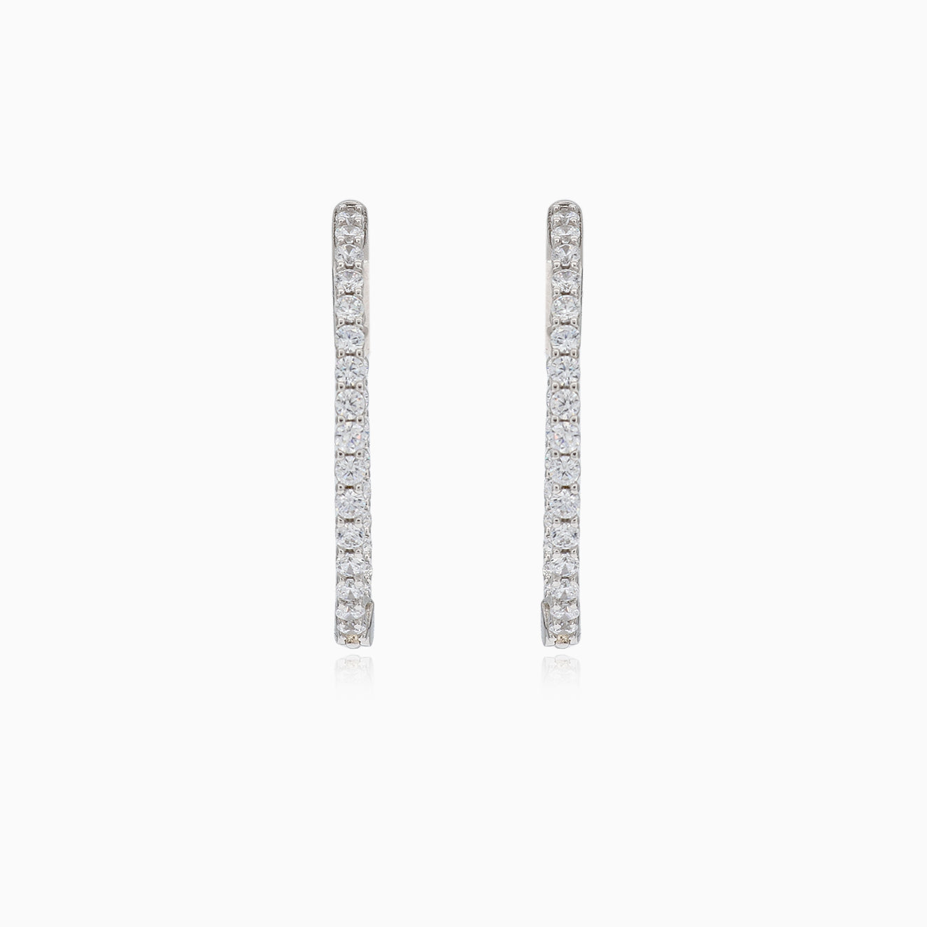 Boucles d'oreilles en argent élégantes, décorées d'une ligne de zircons en sertissage griffes.
