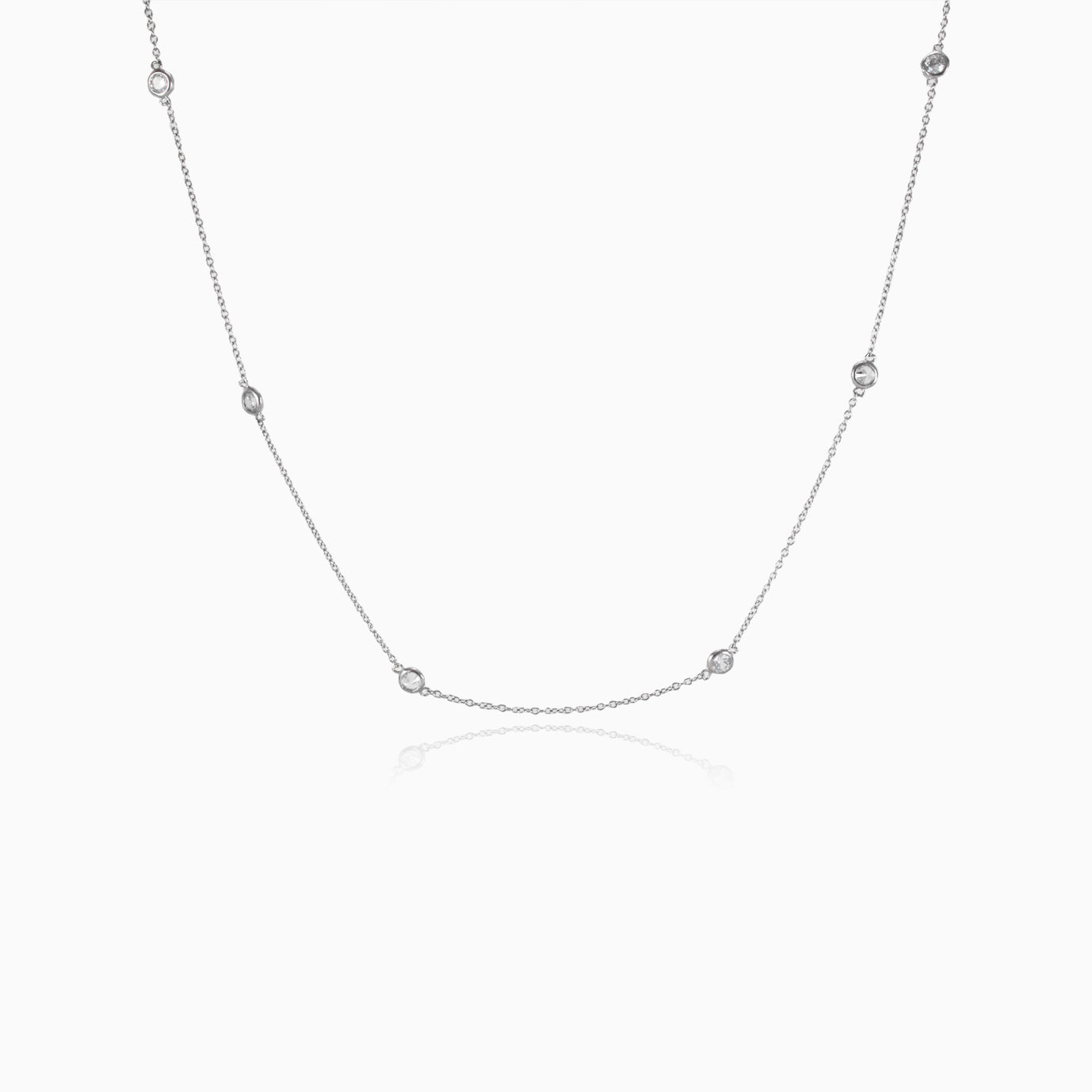 Collier élégant en argent sterling orné de douze zircones blanches serties clos.