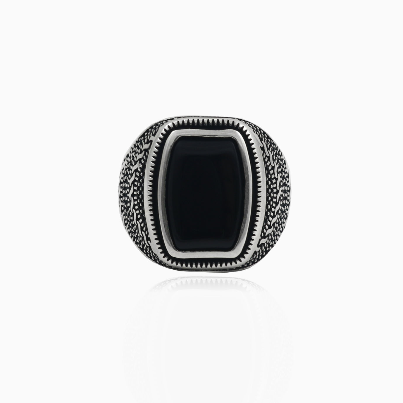 Pánský stříbrný prsten s onyxem, radiant a ryté boky