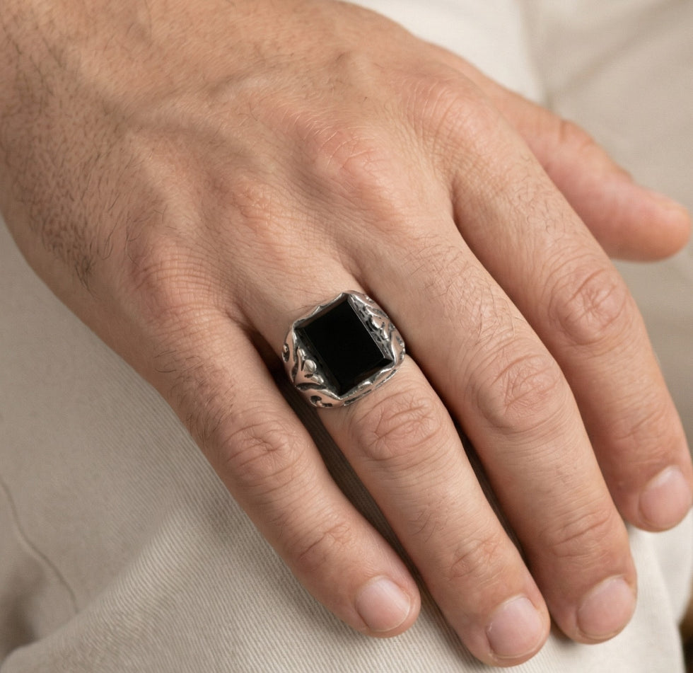 Tento pánský prsten ze sterlingového stříbra představuje elegantní onyx zasazený jako solitér, který vyniká svou hloubkou a tmavým tónem. Hladké linie a precizní provedení dodávají šperku moderní a sebevědomý vzhled. Ideální volba pro muže, kteří hledají výrazný a elegantní doplněk.