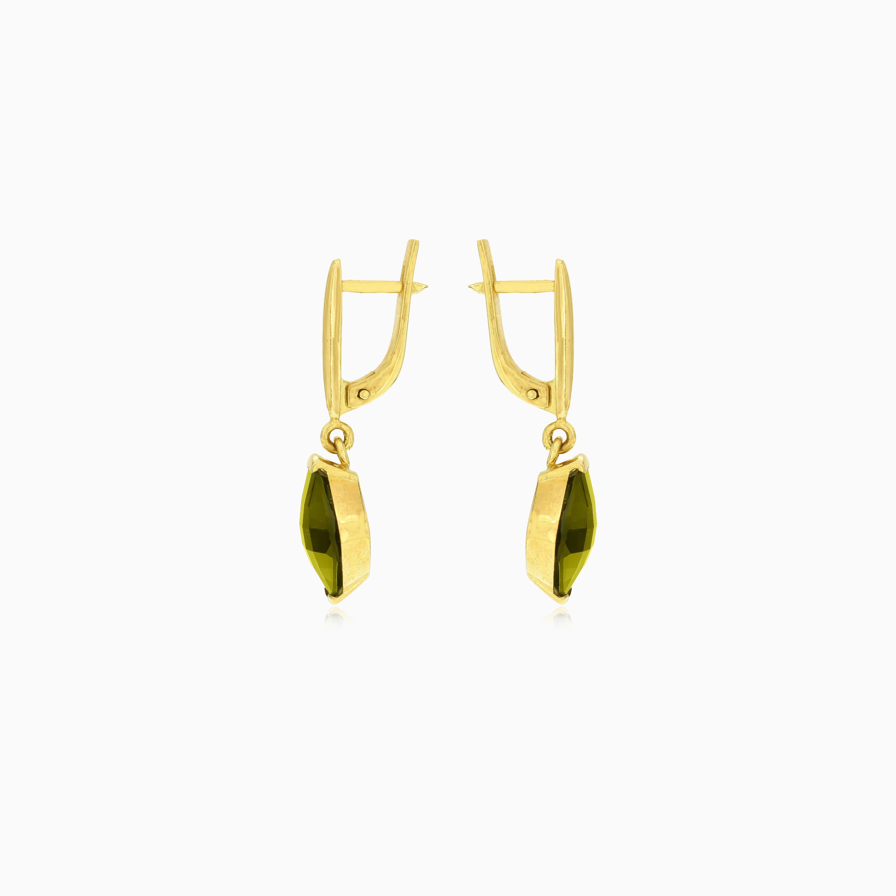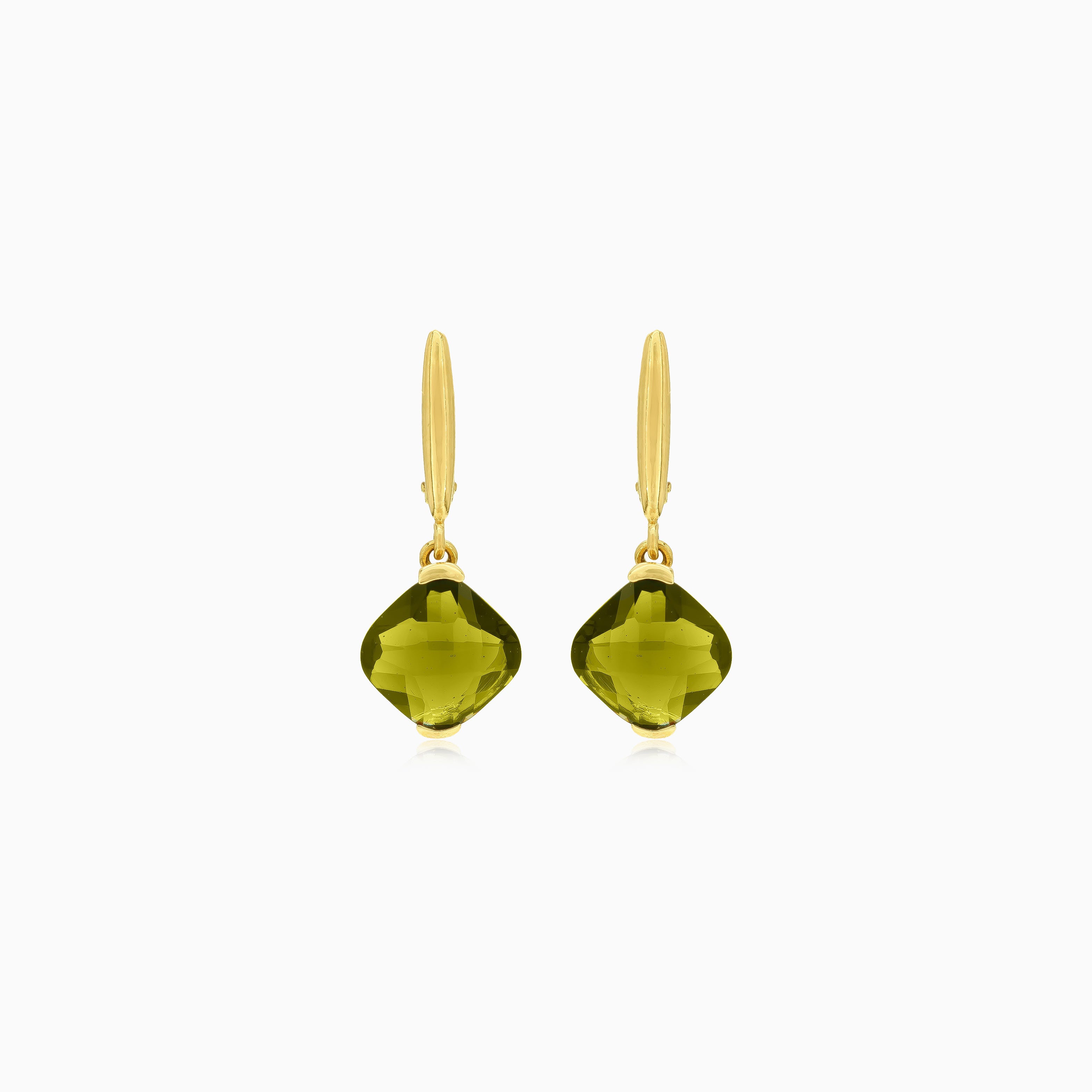 Boucles d’oreilles en or avec moldavite taille coussin