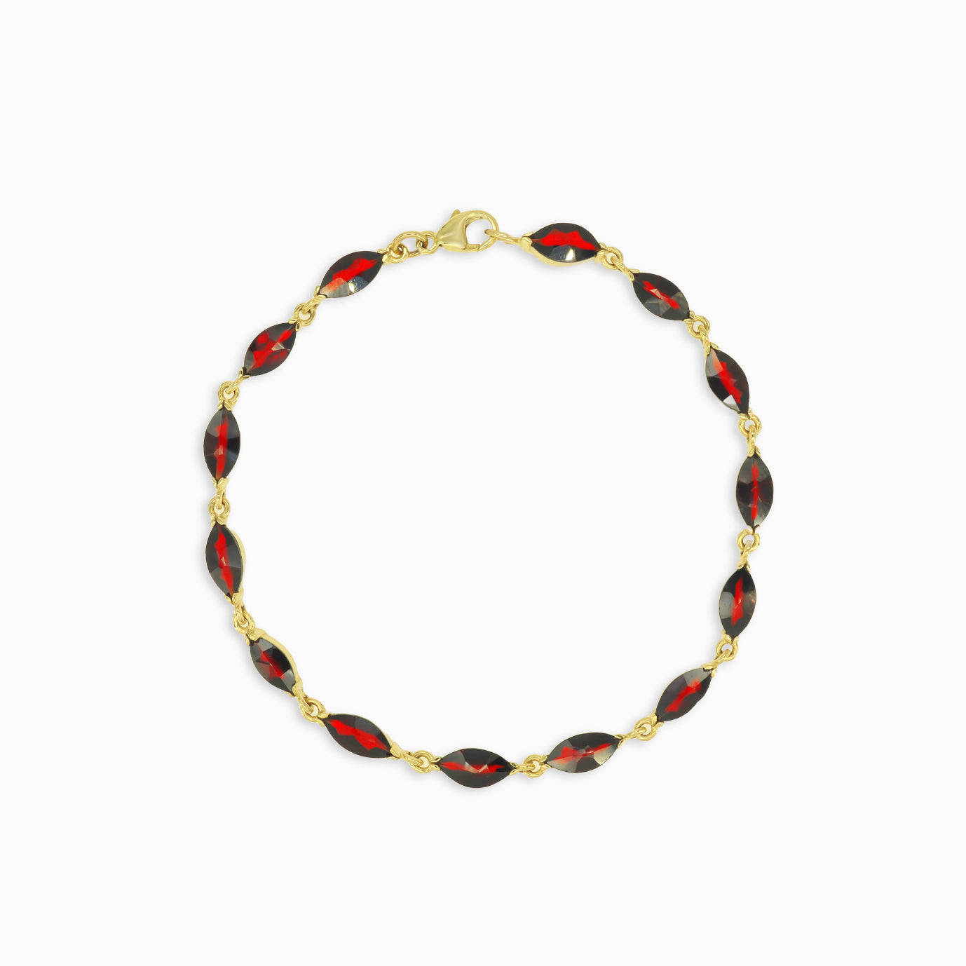 Ajoutez une touche de sophistication à votre tenue avec ce bracelet pour femme, orné de grenats marquise taillés en pas fin, sertis en or jaune 14 carats luxueux avec un sertissage à griffes en V sécurisé et un fermoir mousqueton.
