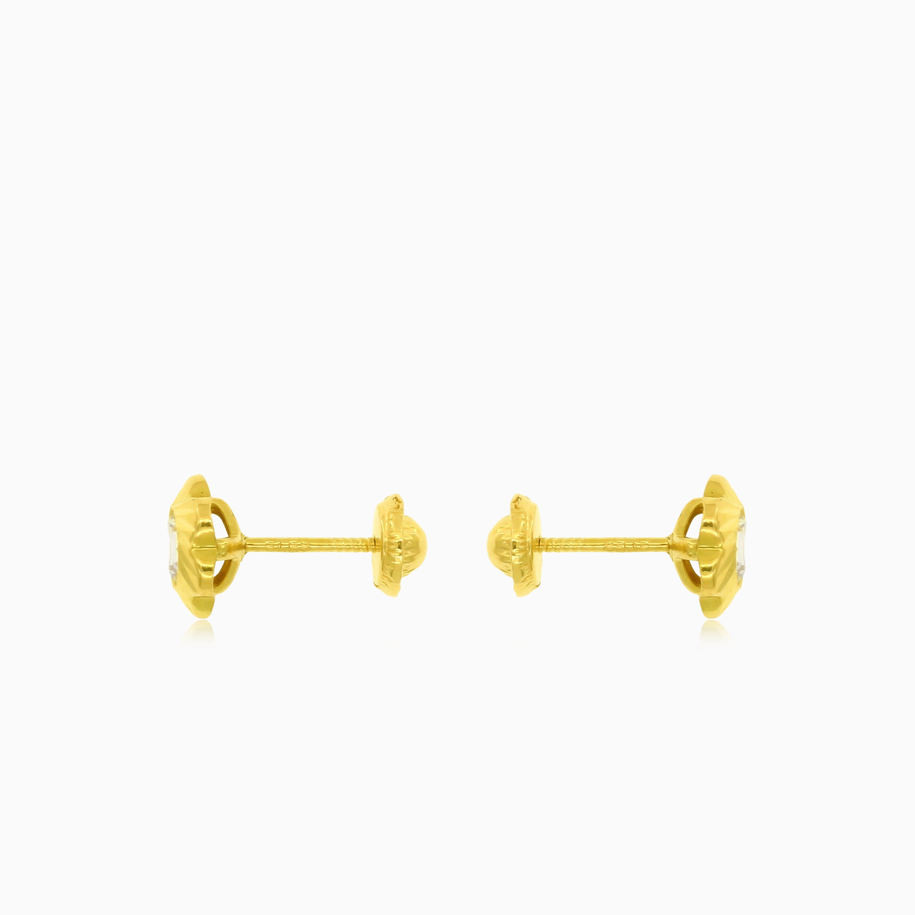 Boucles d’oreilles florales pour femme en or jaune 18 carats avec zirconiums cubiques ronds taille fine à gradins, sécurisées par un fermoir vissé et élégamment serties clos pour une touche de charme féminin.