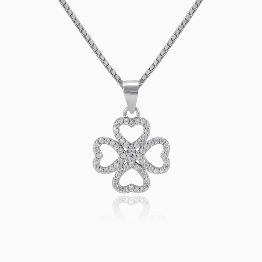 Pendentif trèfle en argent sterling avec des feuilles en forme de cœurs, décorées de zircon cubiques.
