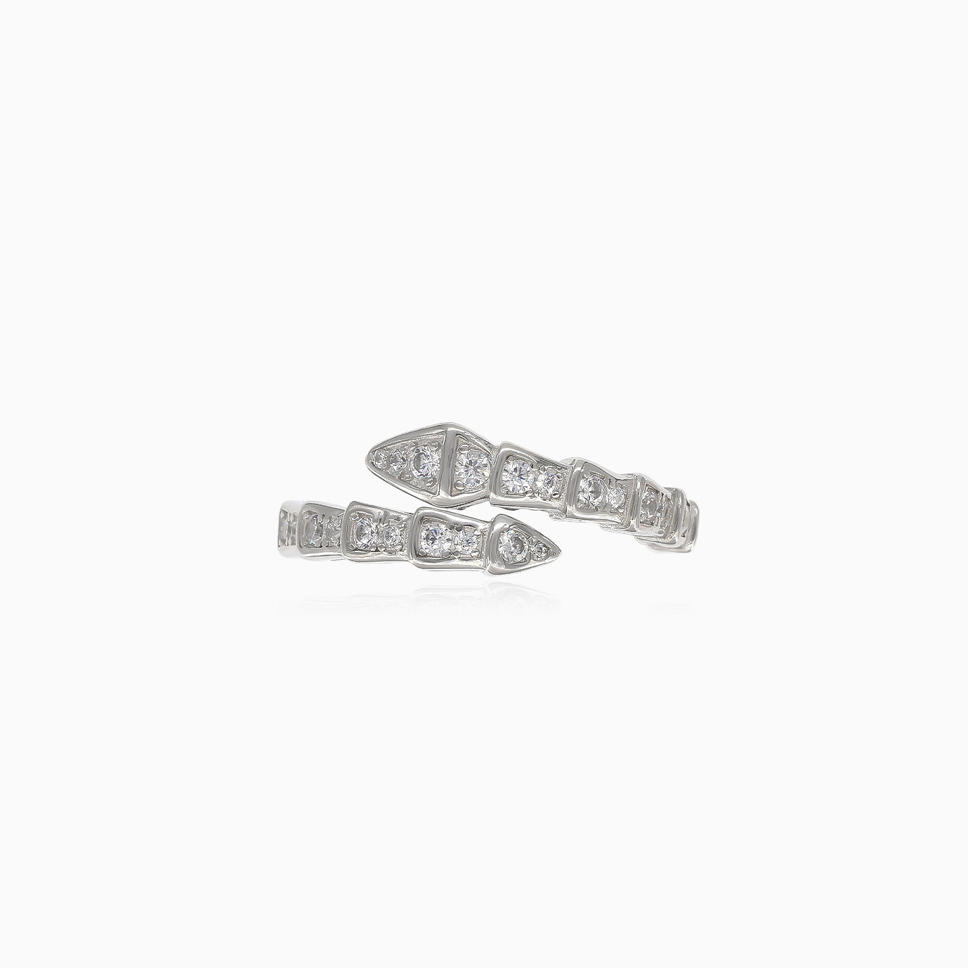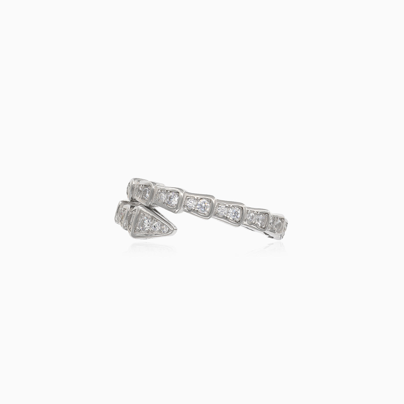 Ornez votre main avec sophistication grâce à notre bague en argent pour femme, ornée de zirconiums ronds taillés en pas-de-princesse, délicatement maintenus par un sertissage à griffes, avec un subtil détail en forme de queue de serpent ajoutant une touche d'allure.