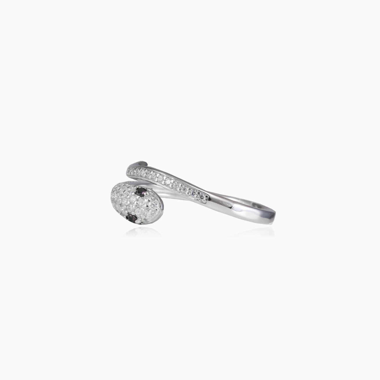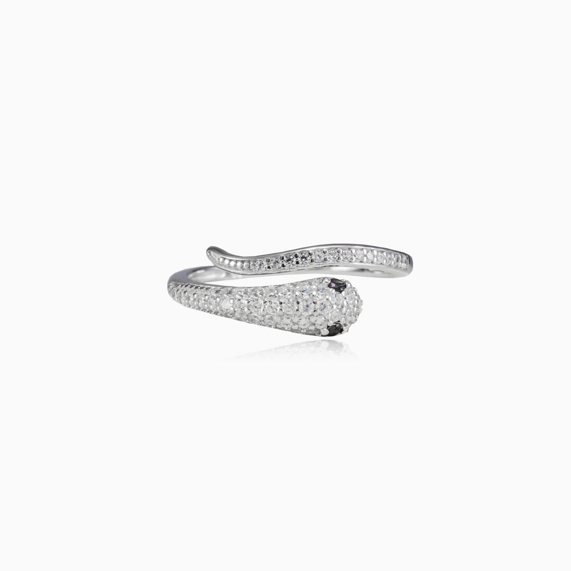 Bague en argent sterling ajustable en forme de serpent décorée de zirconiums cubiques et d'onyx pour les yeux.