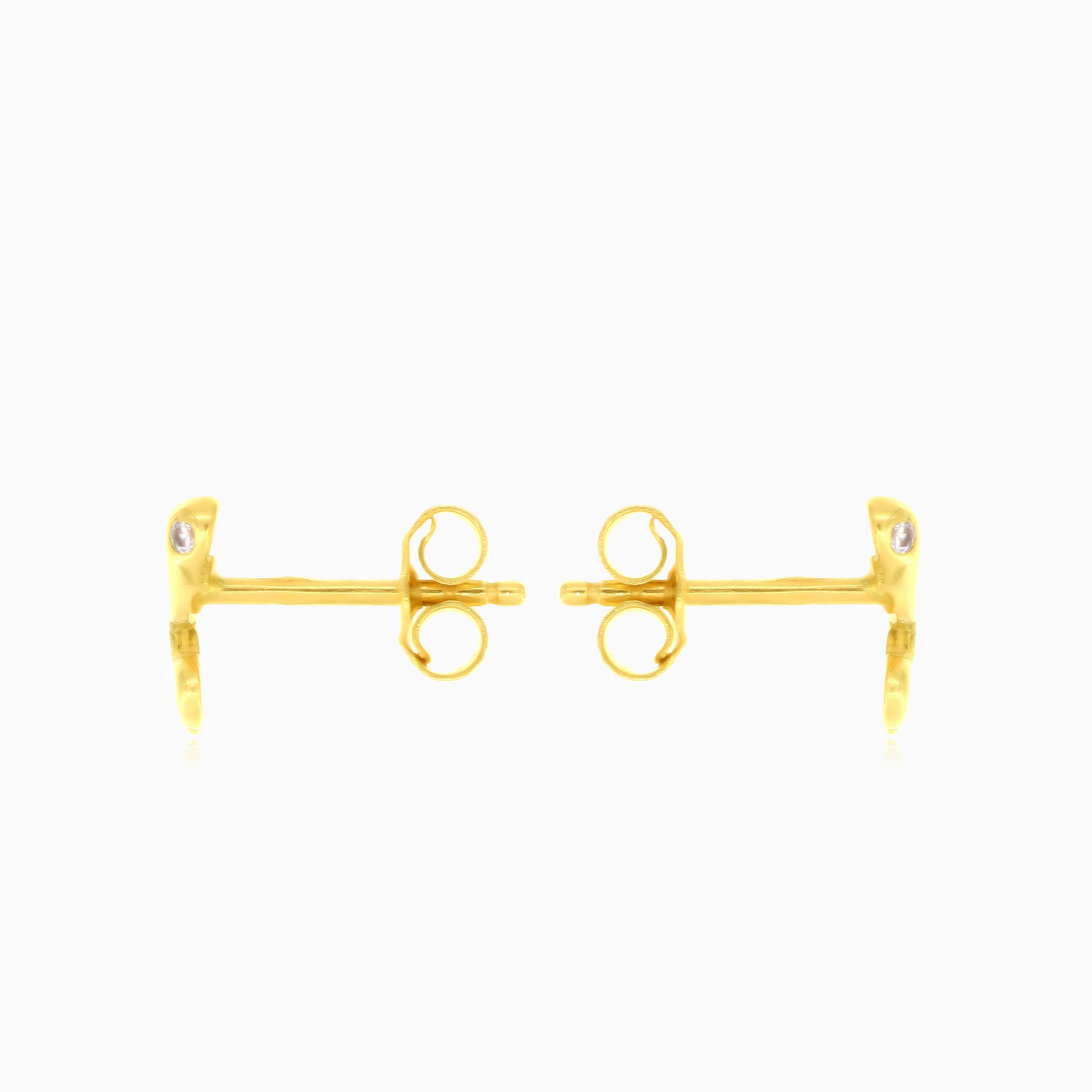 Boucles d’oreilles pour femmes en or jaune 14 carats, avec des clous en zirconium cubique transparent sertis dans un chaton captivant, créant un charme animalier avec une touche de glamour.