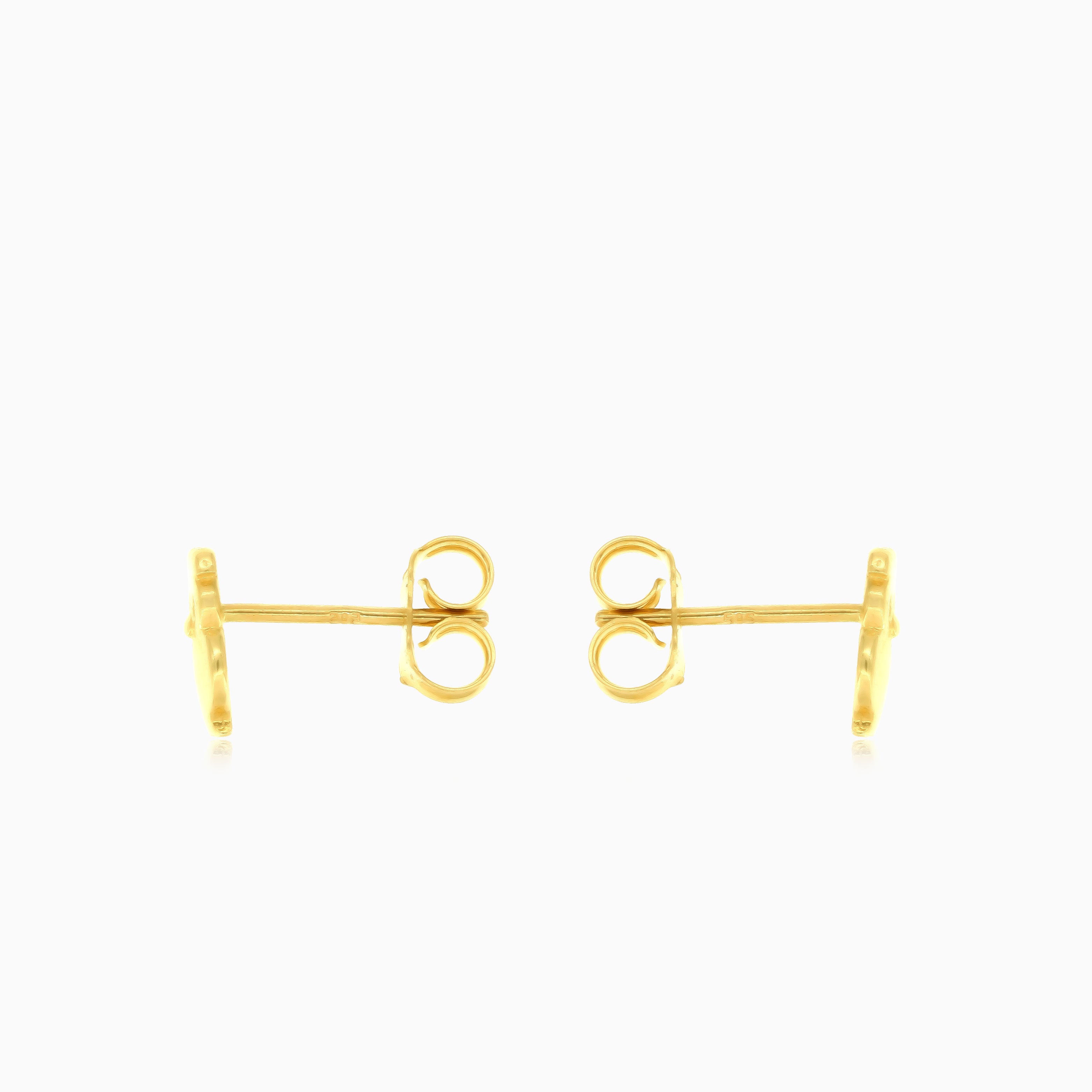 Clous d’oreilles exotiques en or jaune 14 carats avec zircon cubique en taille escalier ronde fine, fermeture poussette, inspirés par des motifs animaliers.