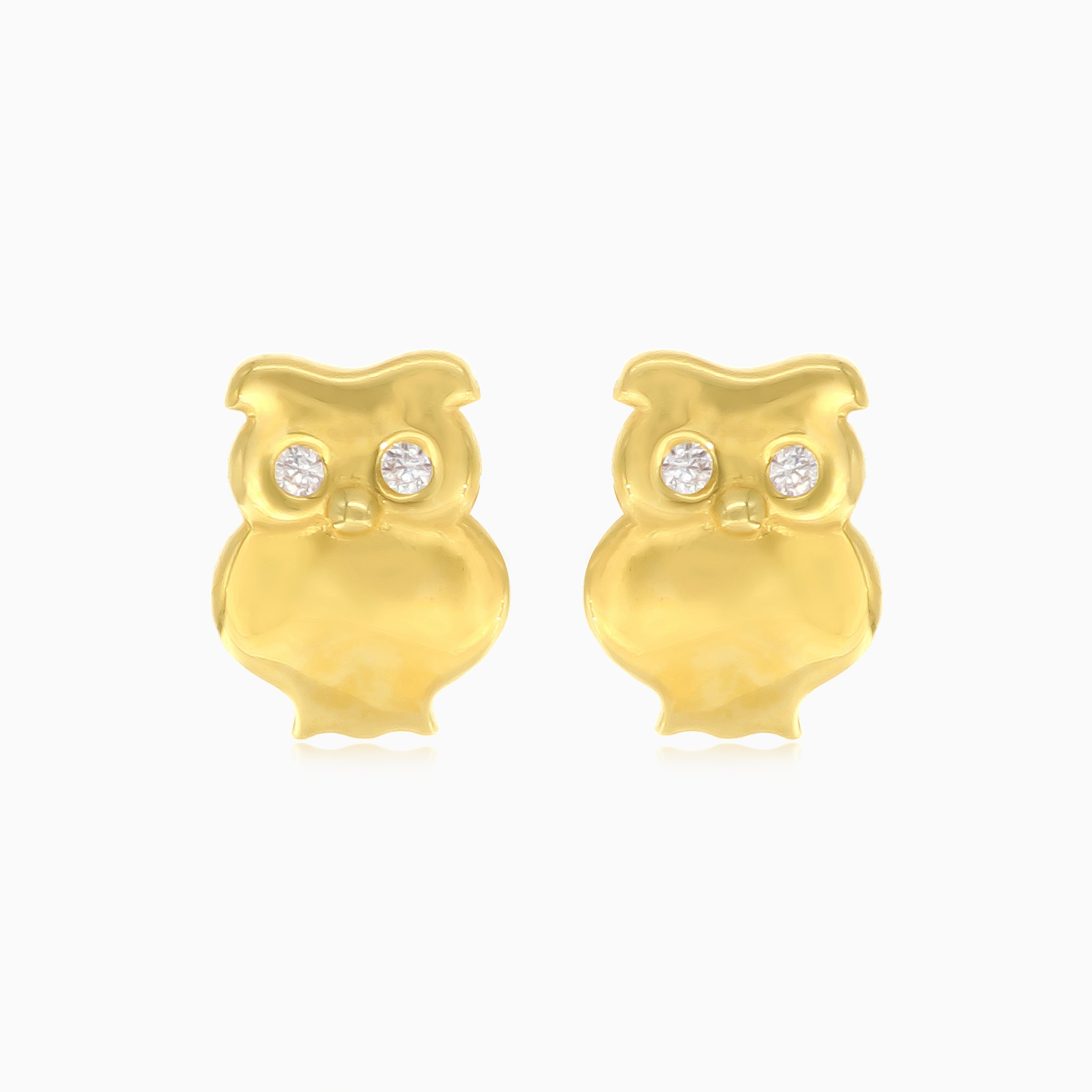 Boucles d’oreilles chouette en or avec zircon cubique