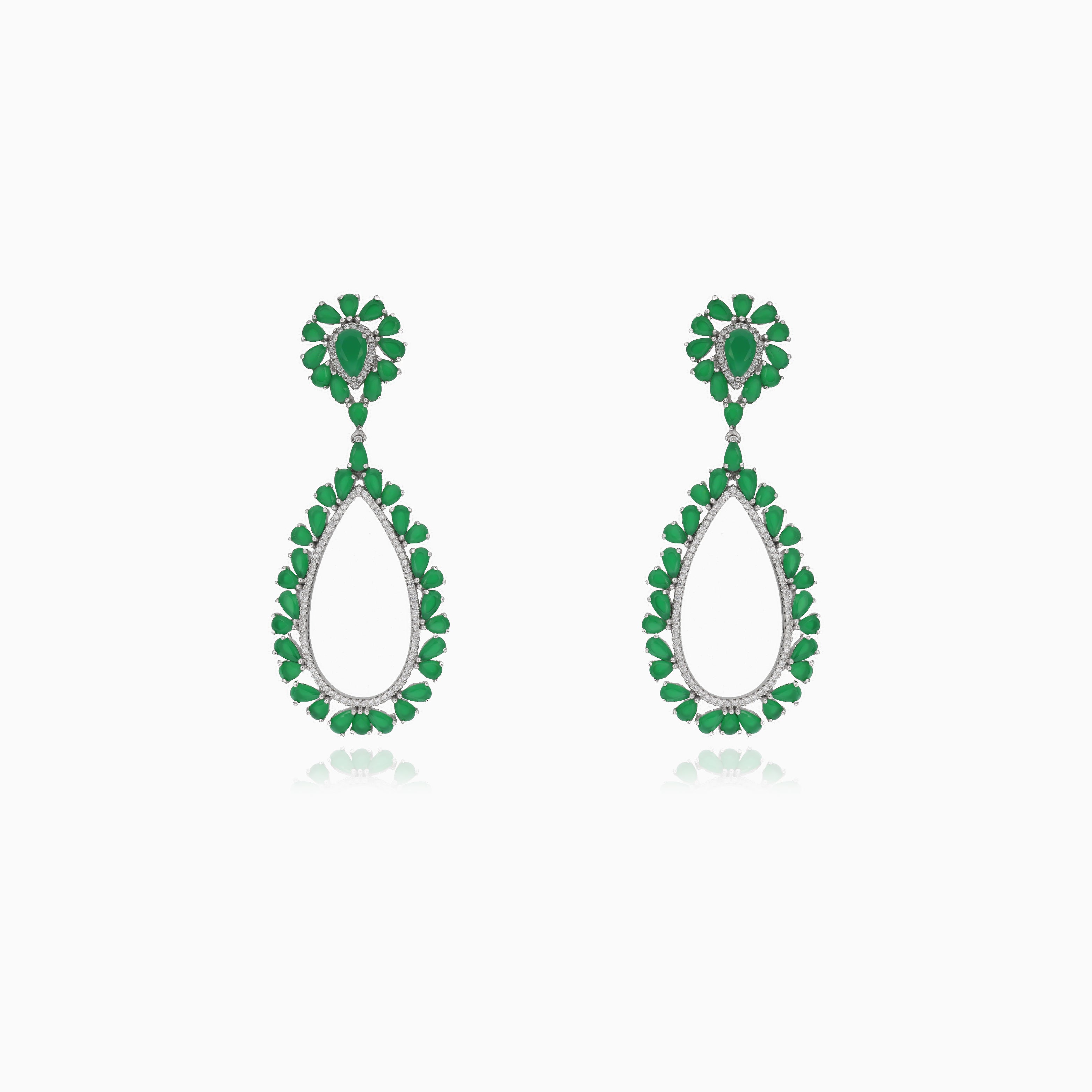 Boucles d’oreilles clous pendantes en argent avec émeraude synthétique