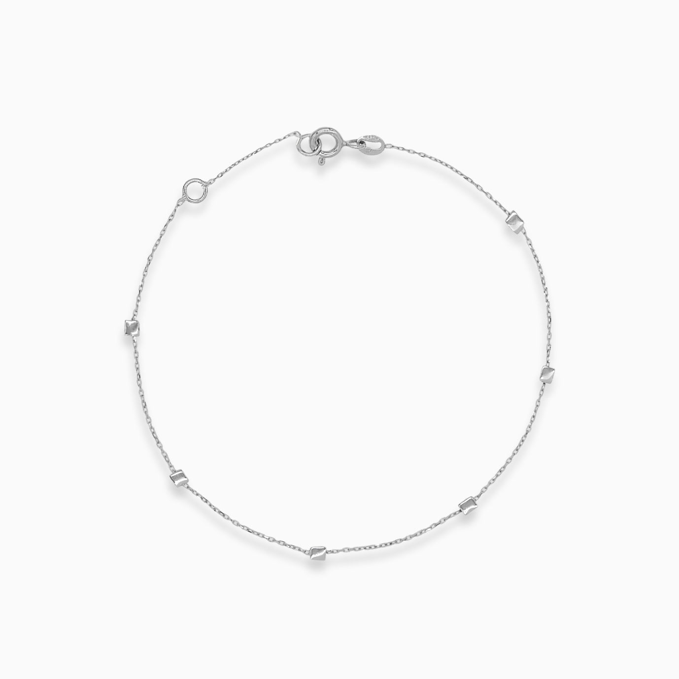 Sublimez votre style avec ce bracelet délicat en or blanc 14 carats orné de petits carrés. Il est doté d’un fermoir à ressort pour un port sécurisé.