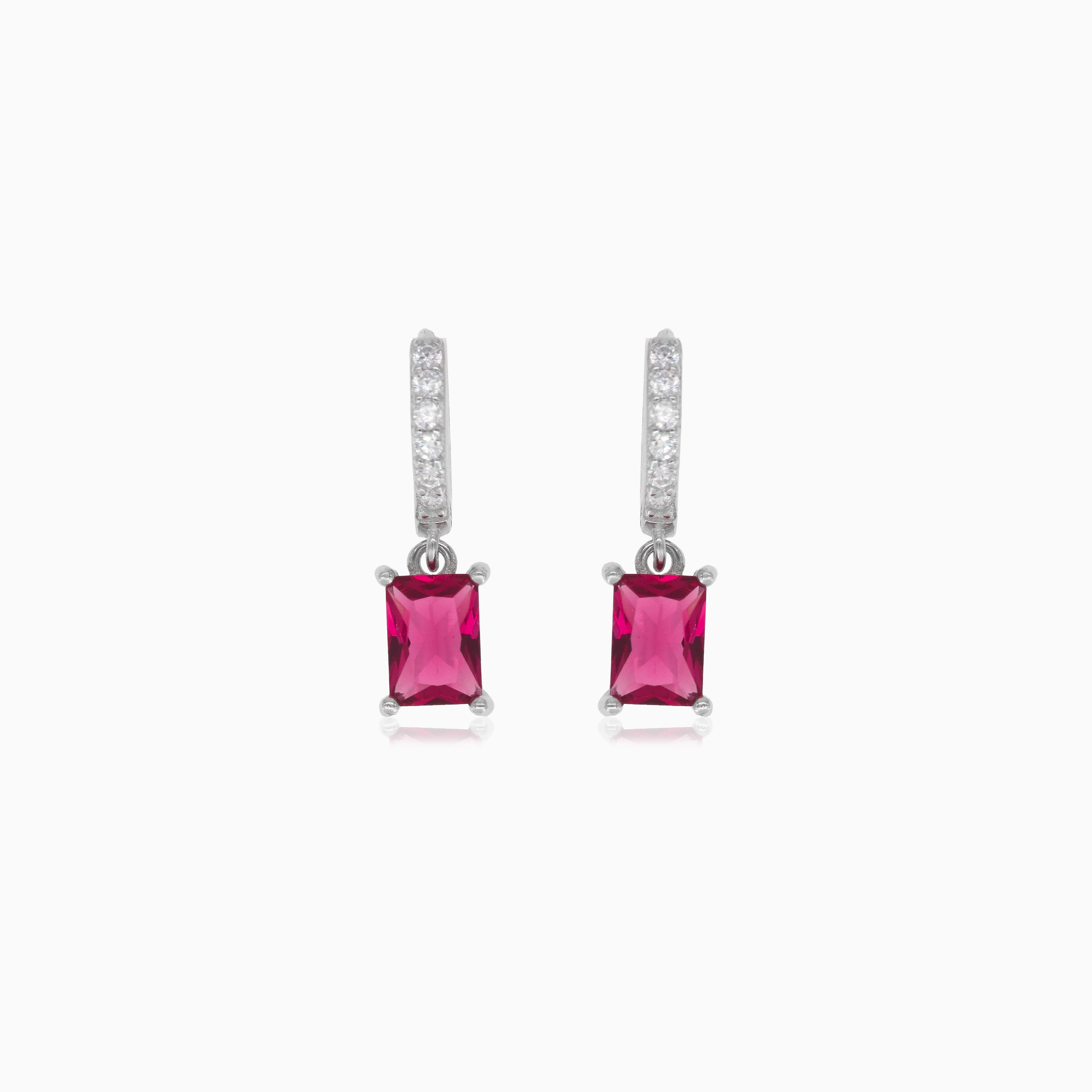 Ces élégantes boucles d’oreilles pendantes en argent sterling présentent un rubis synthétique taille émeraude à facettes en marche, accompagné de zirconiums ronds scintillants sur le fermoir de type huggie. Le serti à griffes met en valeur l’éclat des pierres, apportant une touche raffinée à tout look.