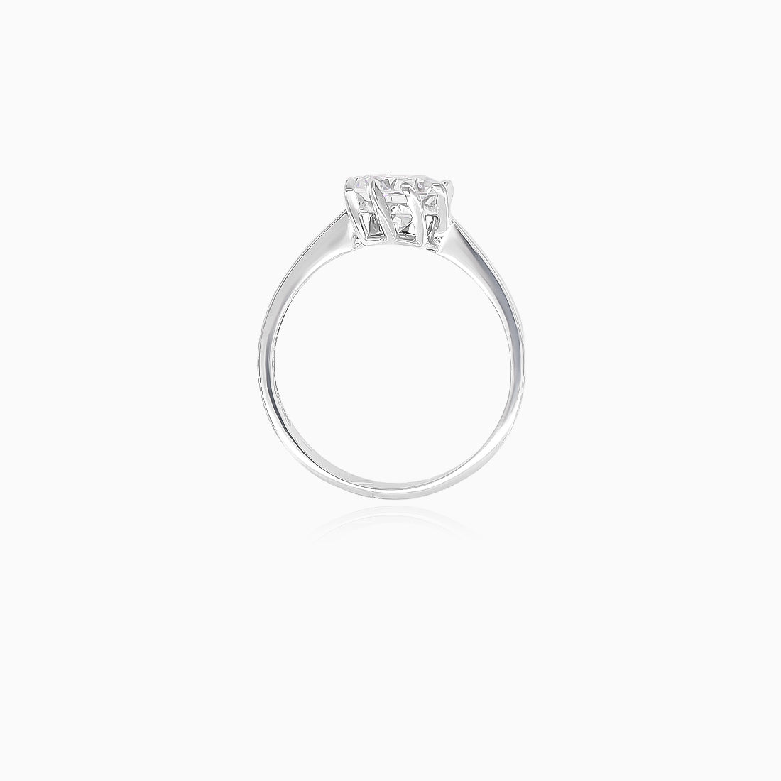 Bague effilée en or blanc avec zirconium cubique rond