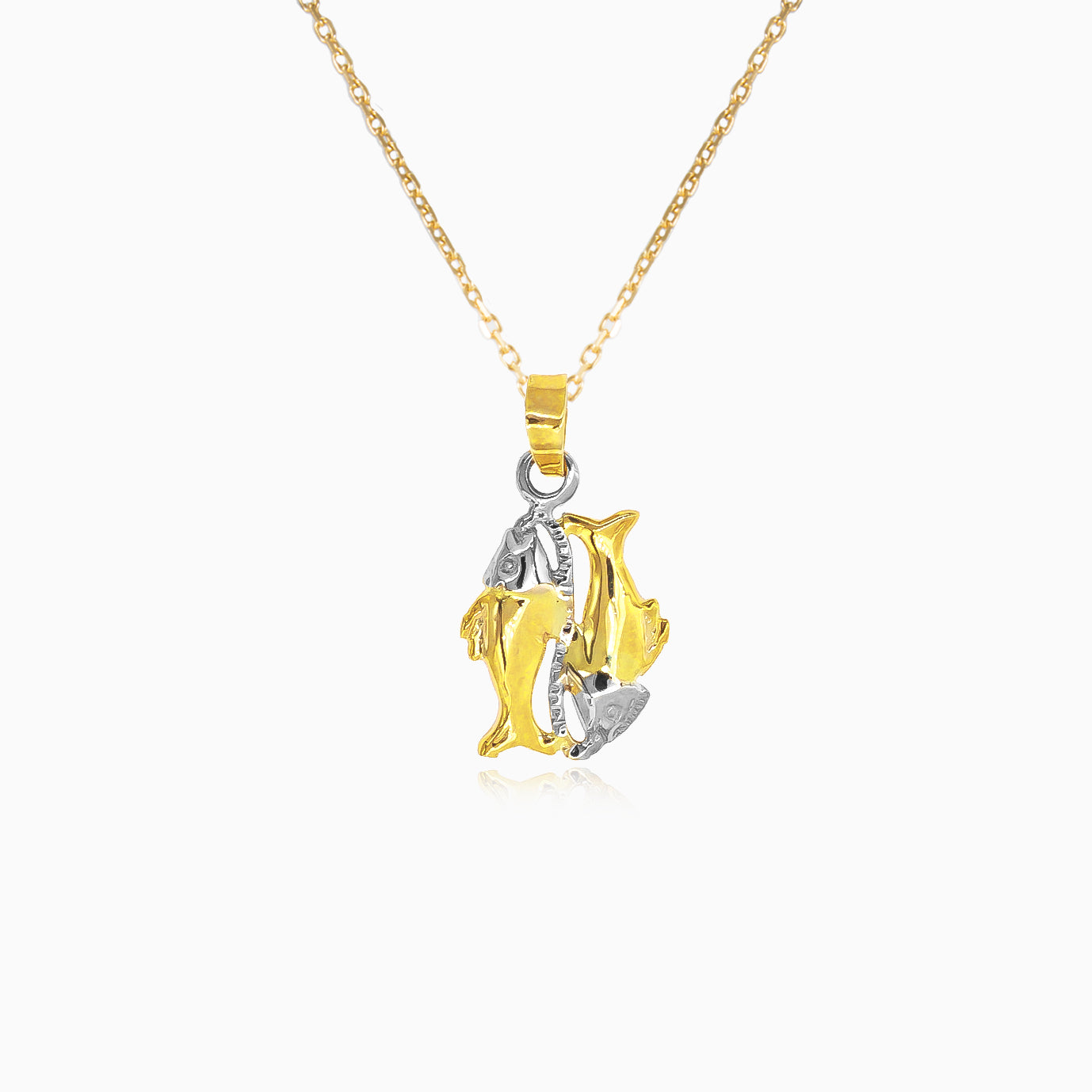 Élégamment façonné en or blanc et jaune 14 carats, ce pendentif met en valeur le signe astrologique des Poissons. Un cadeau attentionné pour témoigner votre affection à vos proches.