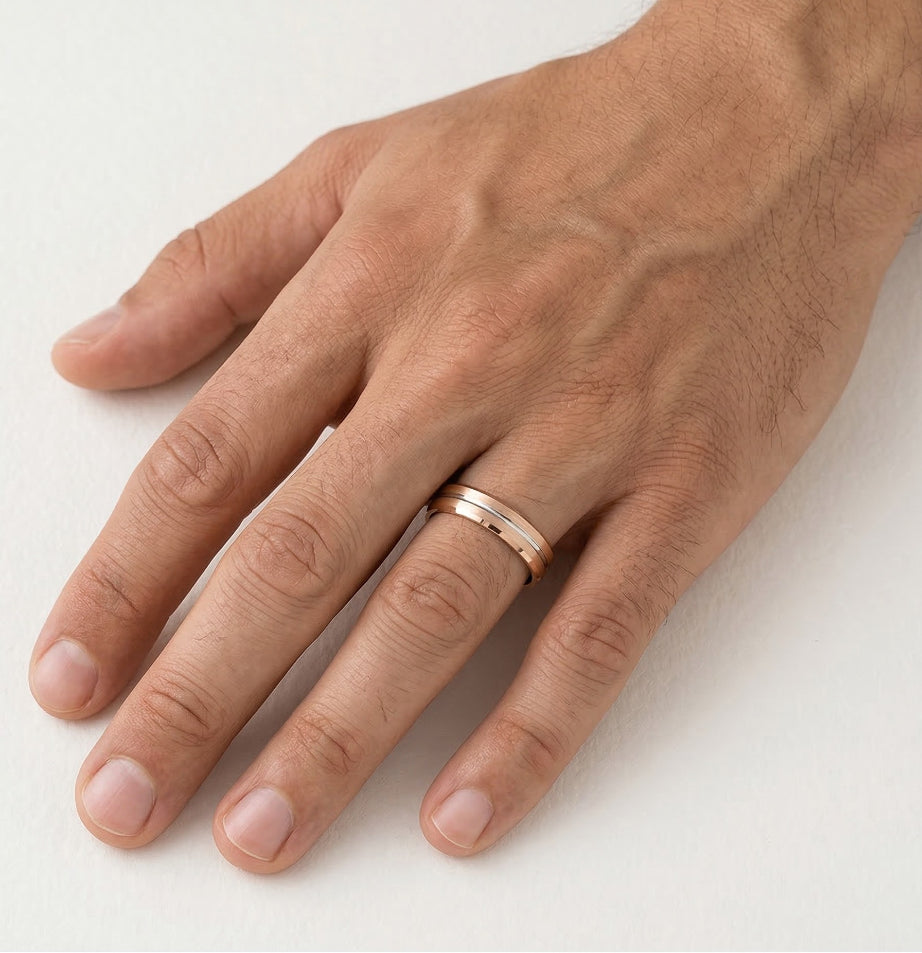 Dvoubarevný hranatý snubní prsten Dvoubarevný hranatý snubní prsten