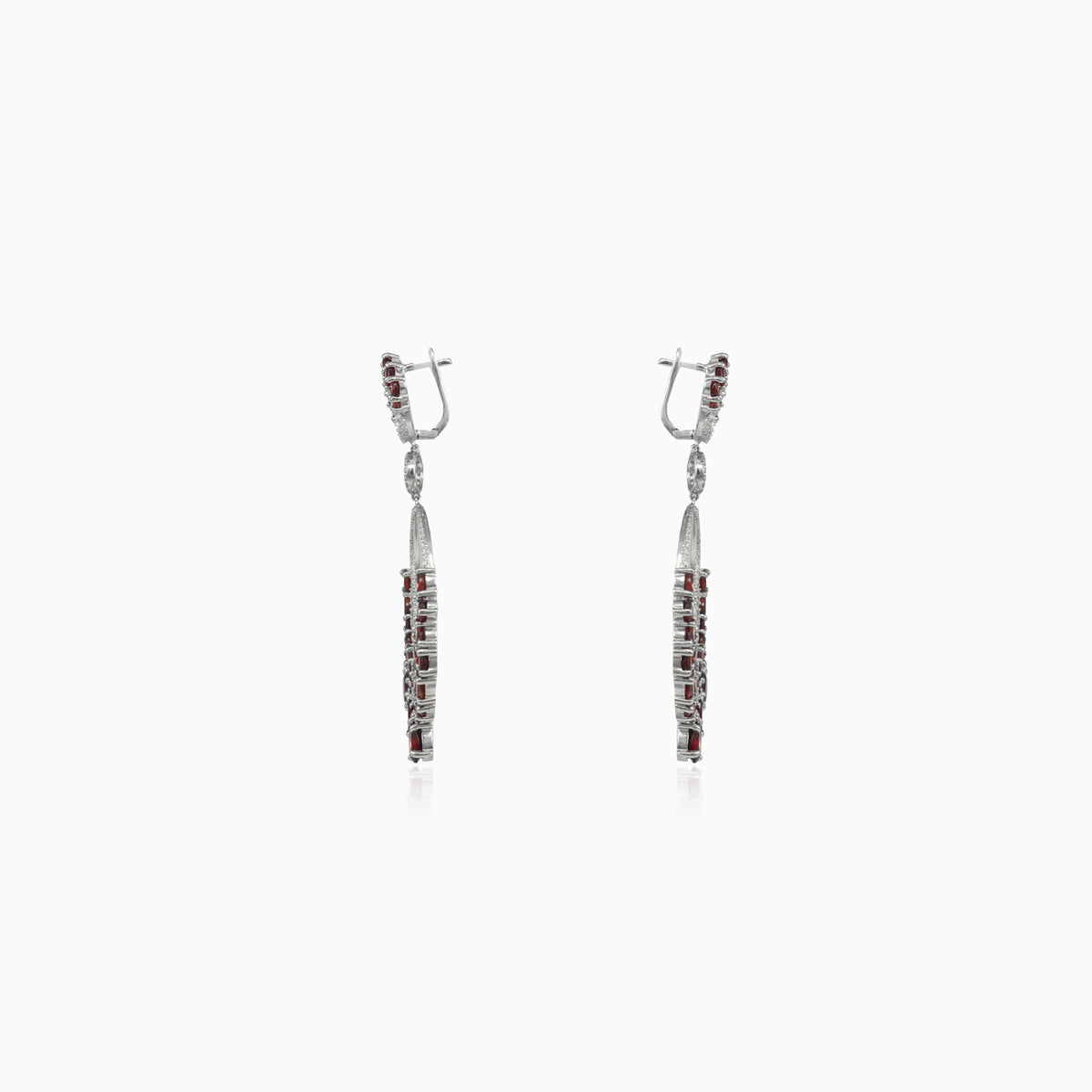 Moderní masivní stříbrné náušnice v kombinaci s granáty a kubickou zirkonií. Ideální pro zvláštní příležitost.