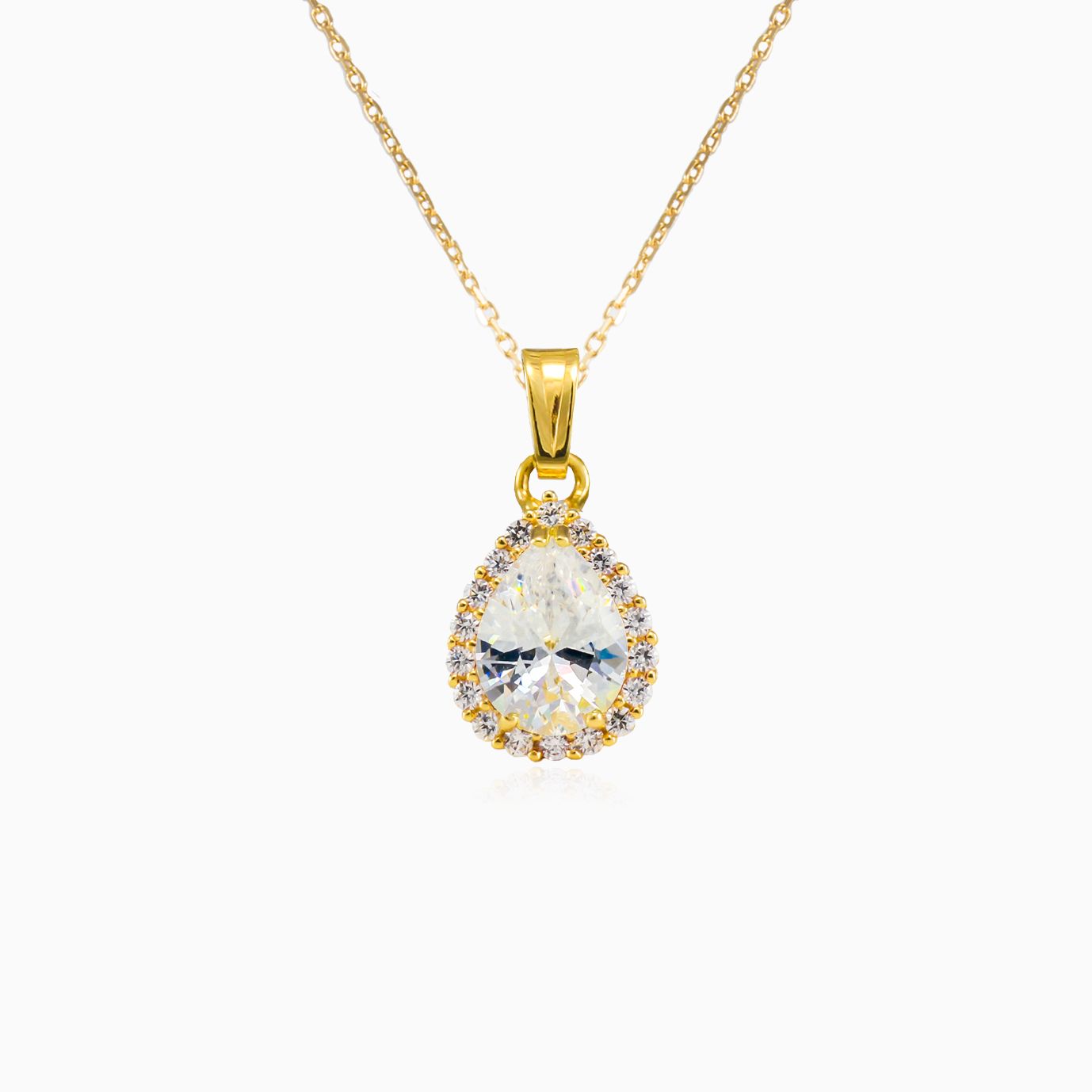 Přívěsek z 14-karátového žlutého zlata s kubickým zirkonem kapkového brusu a lunetou z kubické zirkonie.